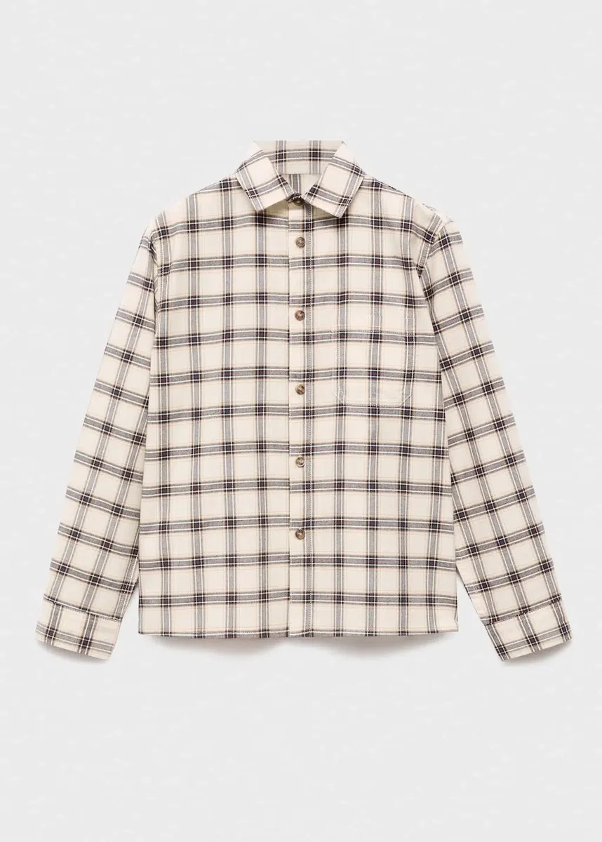 100% bawełna. Prosty krój. Kołnierzyk koszulowy. Długie rękawy z mankietami zapinanymi na guziki. Zapięcie na guziki z przodu. Naszywana kieszeń z przodu