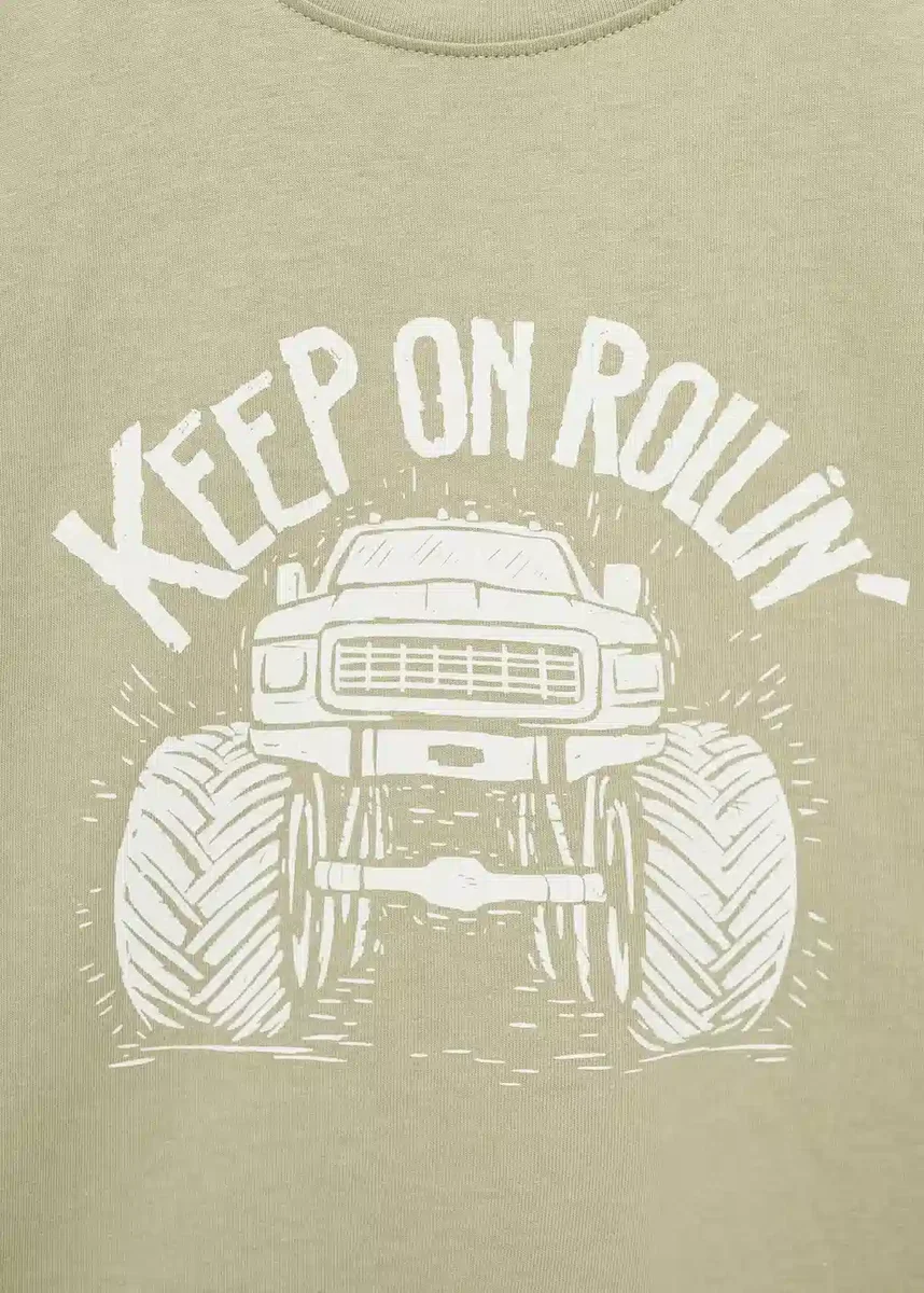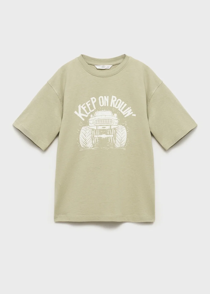 100% bawełna. Krótki krój. Nadrukowany wzór. Okrągły dekolt. Krótkie rękawy. Nadruk na piersi.