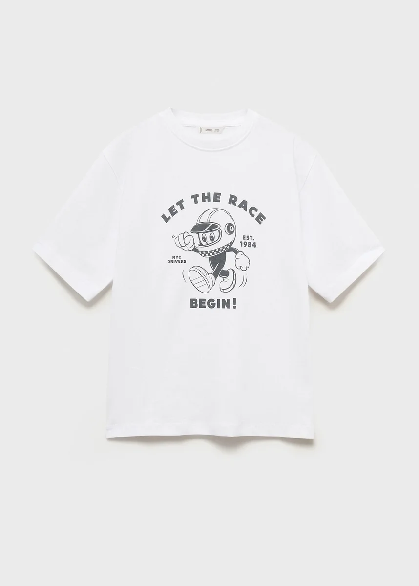 100% bawełna. Krótki fason. Prosty krój. Okrągły dekolt. Krótki rękaw. Nadrukowany wzór. Nadruk na przodzie.