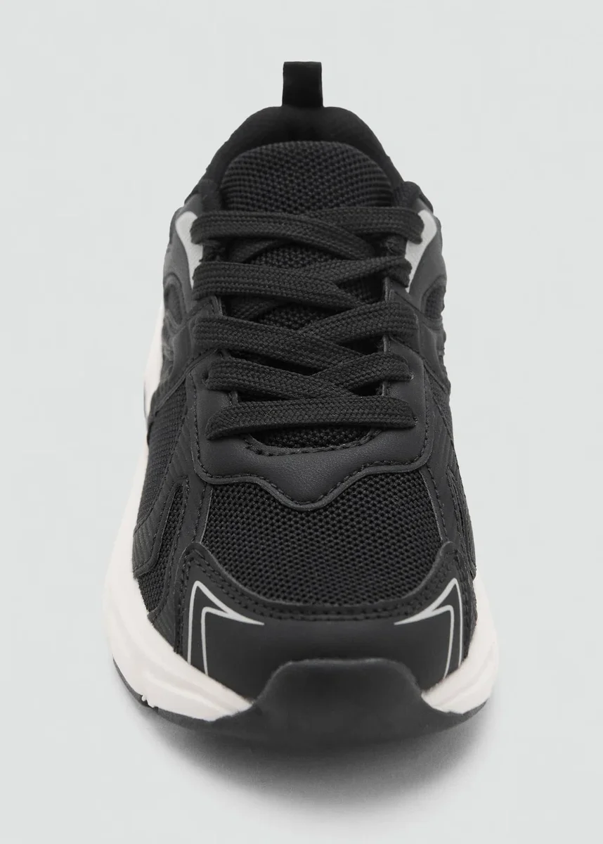 Połączony design. Okrągły nosek. Kontrastowa podeszwa. Sznurowane zapięcie.