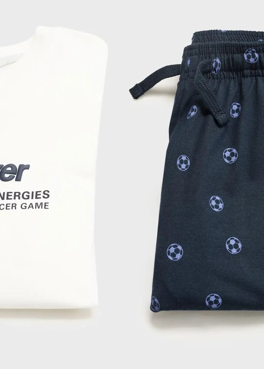 100% bawełna. Długi fason. Nadrukowany wzór. Sportowy fason. Wytłoczony napis na piersi. Okrągły dekolt. Długie rękawy. Spodnie z elastycznym paskiem i regulowanym sznurkiem.