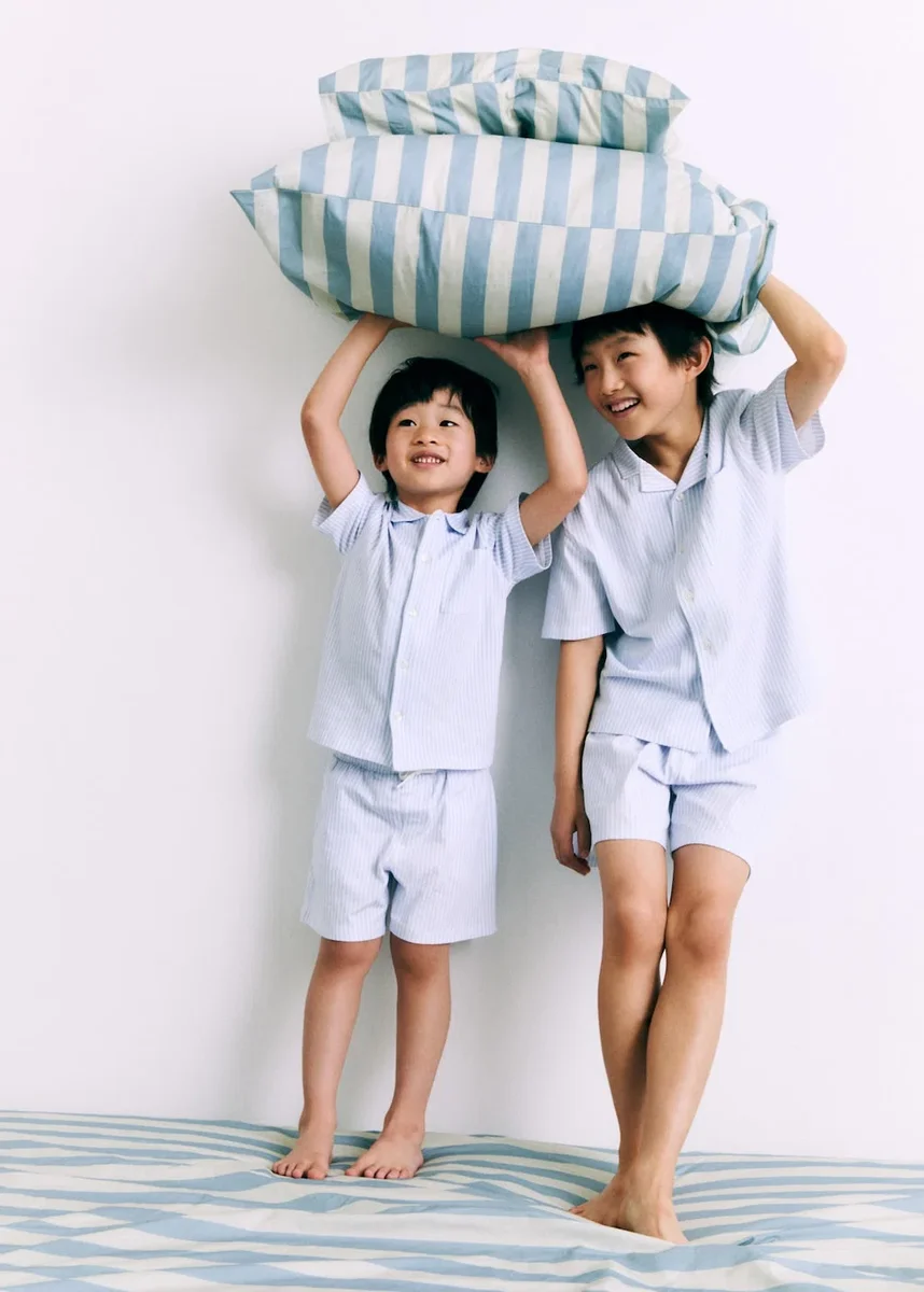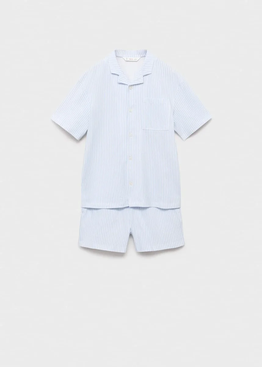 100% bawełna. Prosty krój. Krótki krój. Wzór w paski. Kołnierzyk w kształcie litery V w stylu koszuli. Krótki rękaw. Naszywana kieszeń z przodu. Elastyczny pas. Regulowany sznurek. Produkt promocyjny