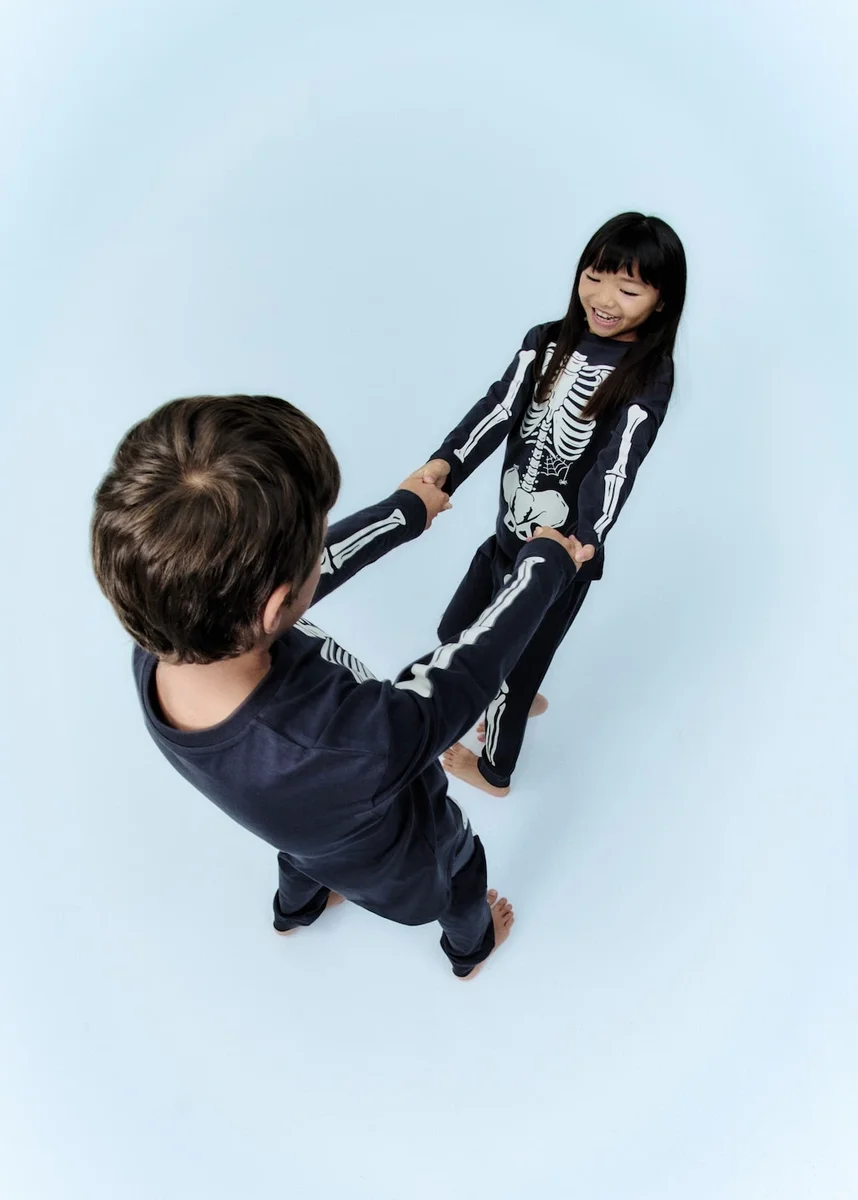 Zestaw koszulki i spodni piżamowych. 100% bawełna. Kolekcja Halloween. Motyw szkieletu. Okrągły dekolt. Długie rękawy.