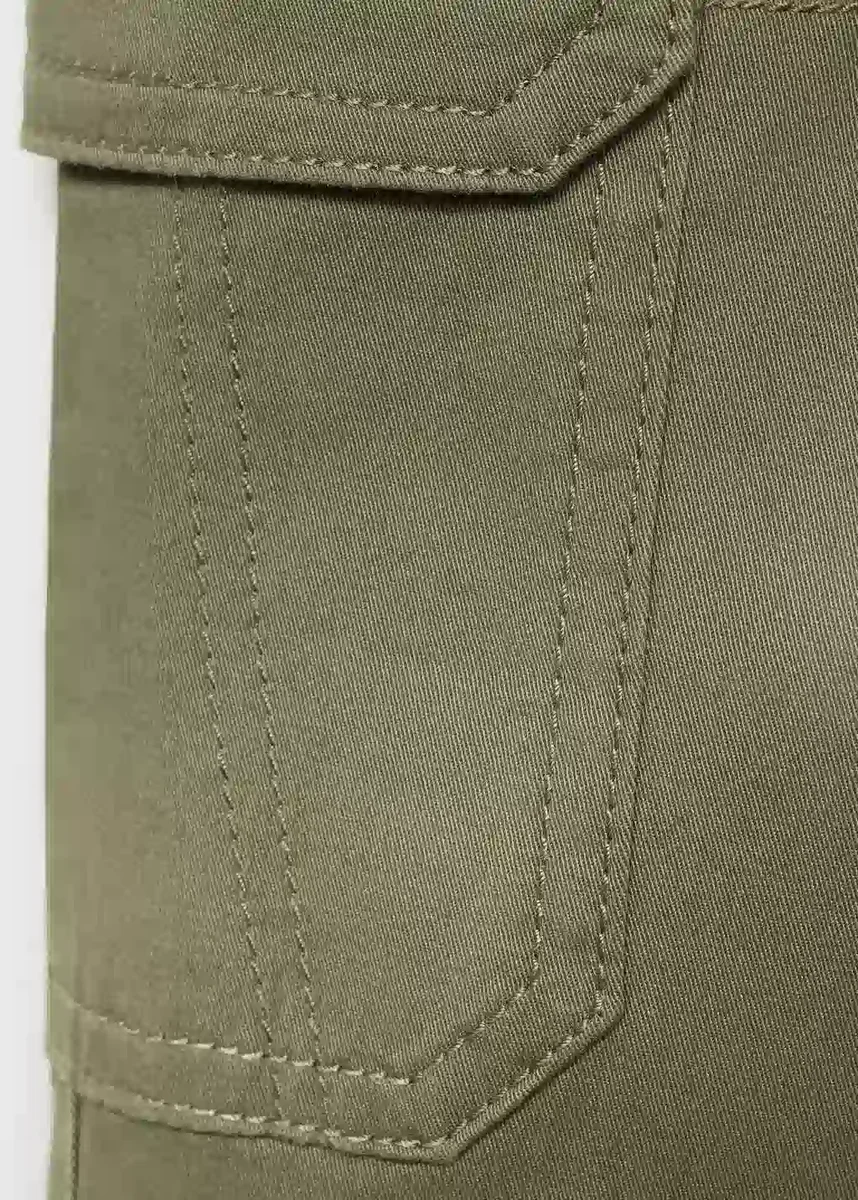 Tkanina bawełniana. Tkanina elastyczna. Długi fason. Fason cargo. Elastyczny pas z regulowanym sznurkiem. Dwie kieszenie boczne. Dwie kieszenie cargo. Powrót do szkoły