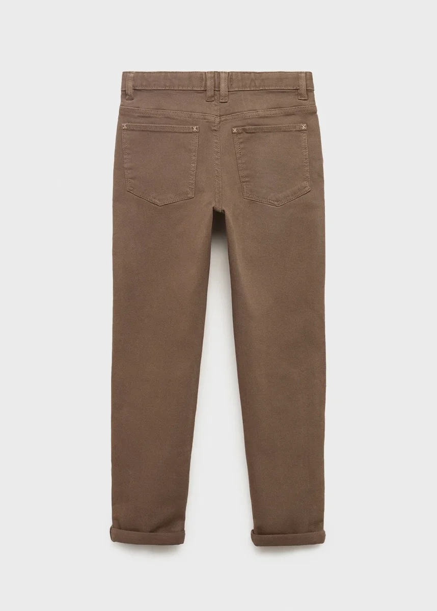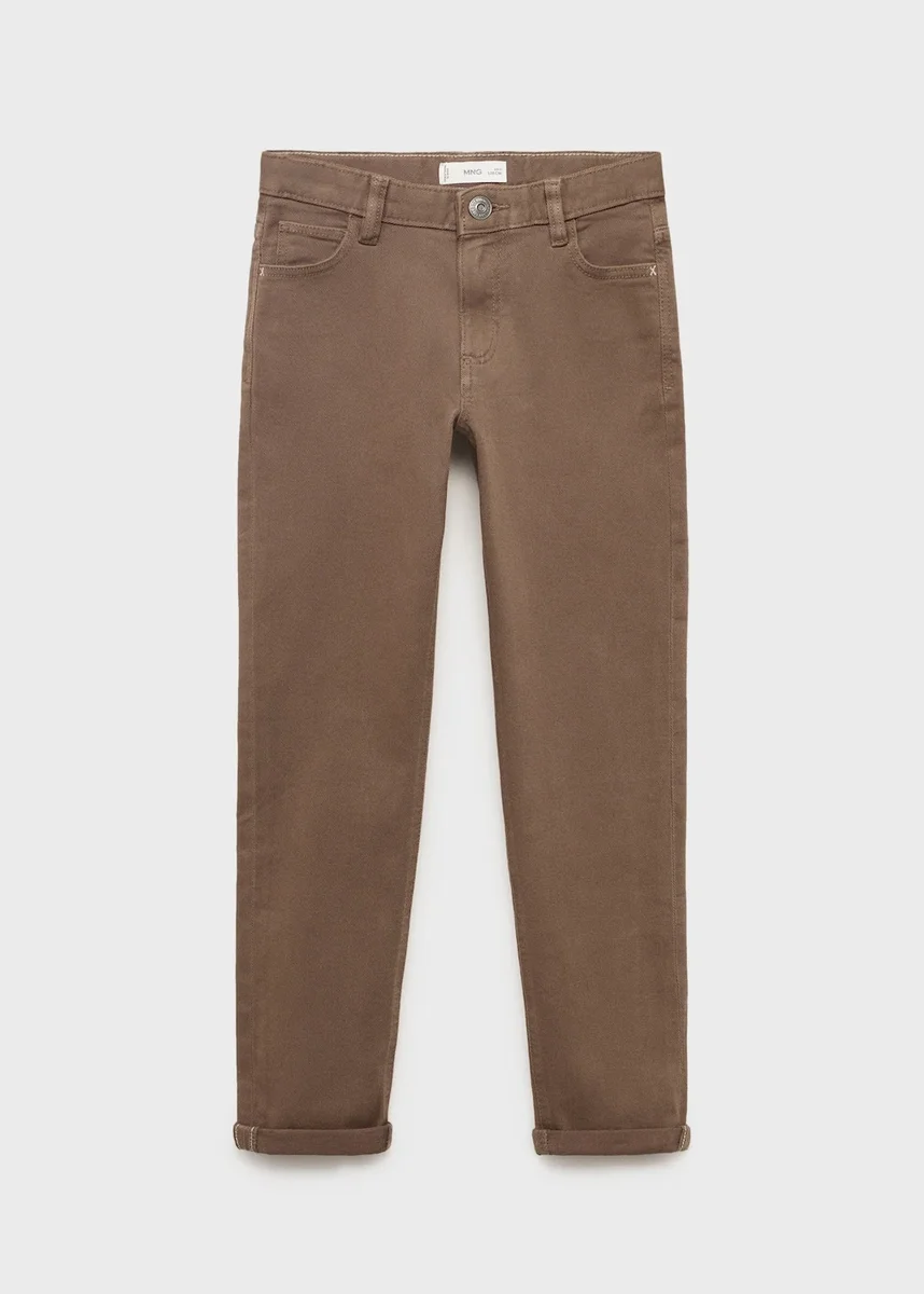 Tkanina bawełniana. Tkanina elastyczna. Styl dżinsowy. Długi fason. Prosty fason. Szlufki. Zapięcie na guzik i zamek błyskawiczny. Dwie kieszenie boczne. Kieszeń na monety. Mankiety. Powrót do szkoły.