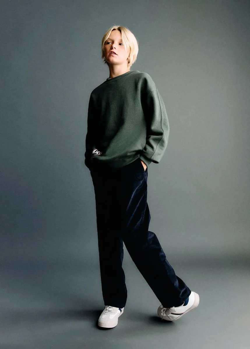 Tkanina z bawełny. Prosty krój. Tkanina sztruksowa. Dwie kieszenie boczne