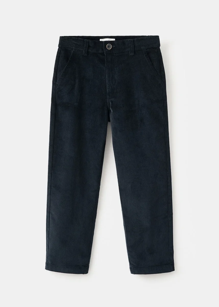 Tkanina z bawełną. Prosty krój. Tkanina sztruksowa. Dwie kieszenie boczne.