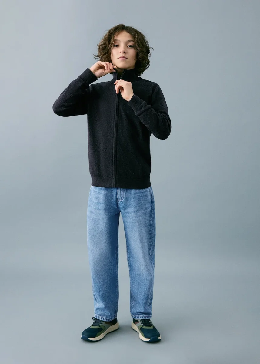 Standardowa długość. Długie rękawy. Prosty krój. Delikatna dzianina. Zapięcie z przodu. Kaptur z klapą. 100% bawełna. Dzianina. Prosty krój. Stójka. Długie rękawy. Zapięcie na zamek błyskawiczny.