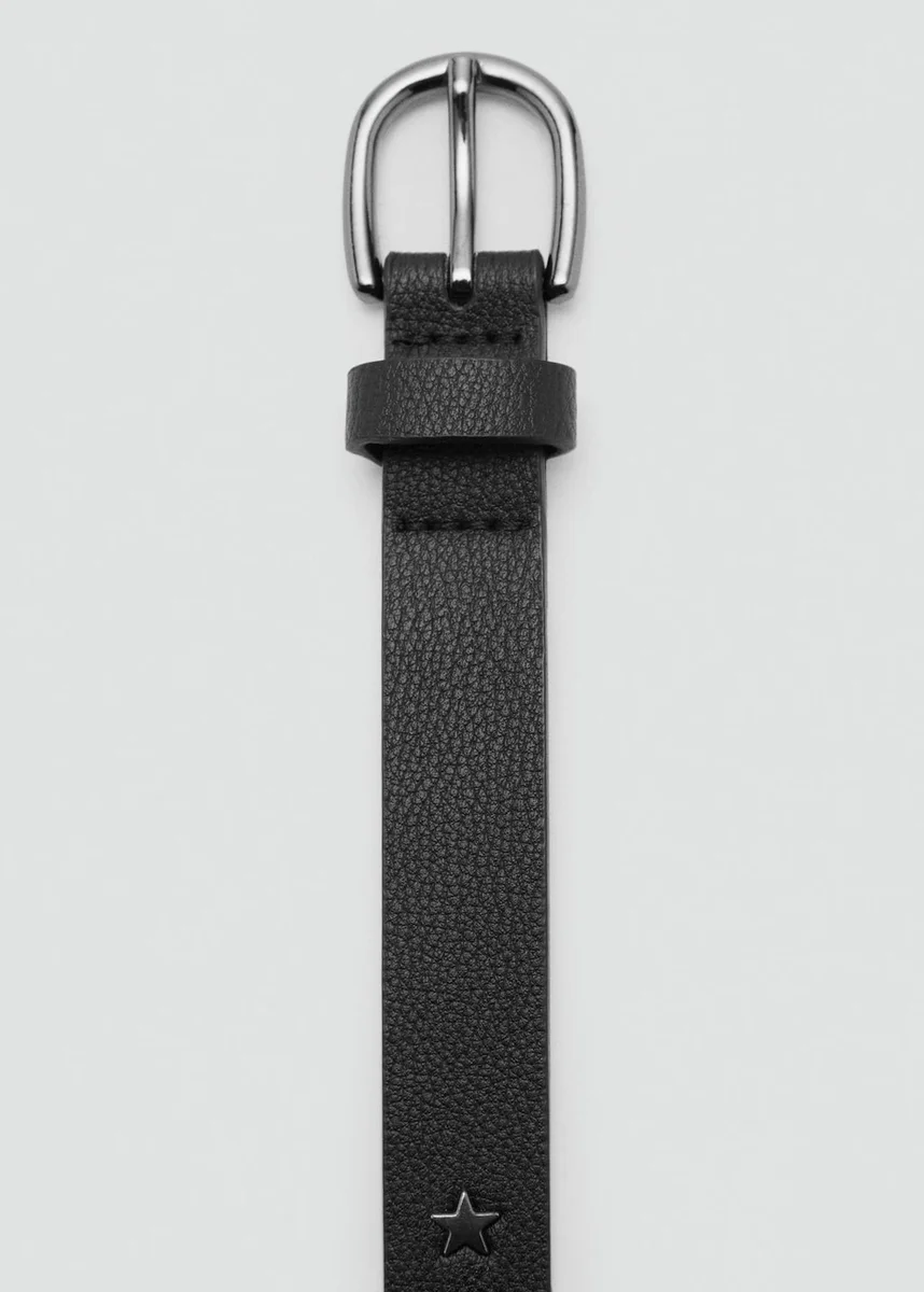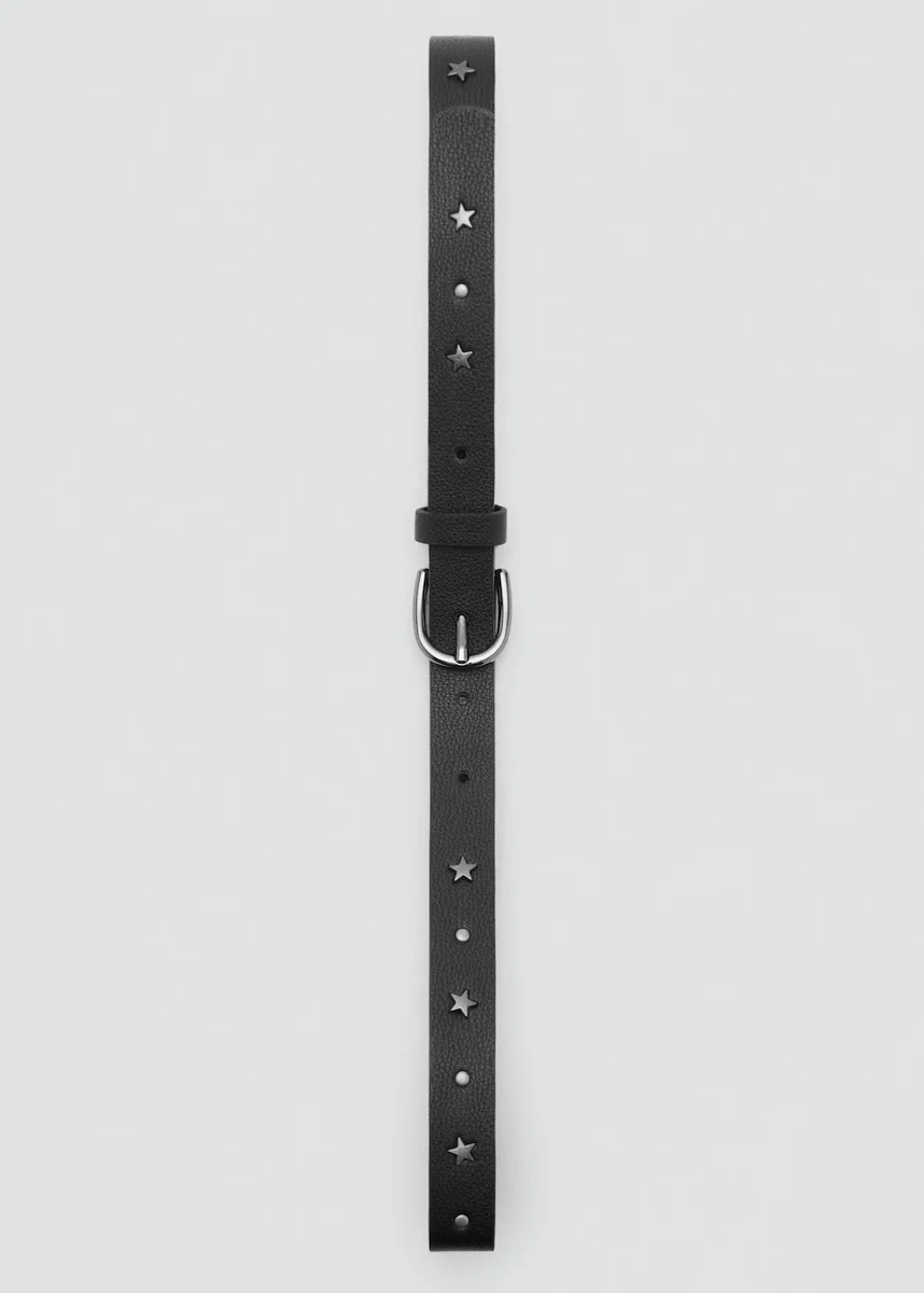 Smukły krój. Zapięcie na klamrę. Detale z ćwiekami. Metalowe detale w kształcie gwiazdek