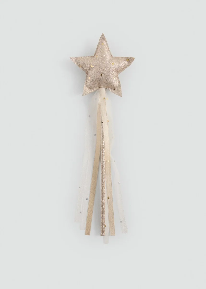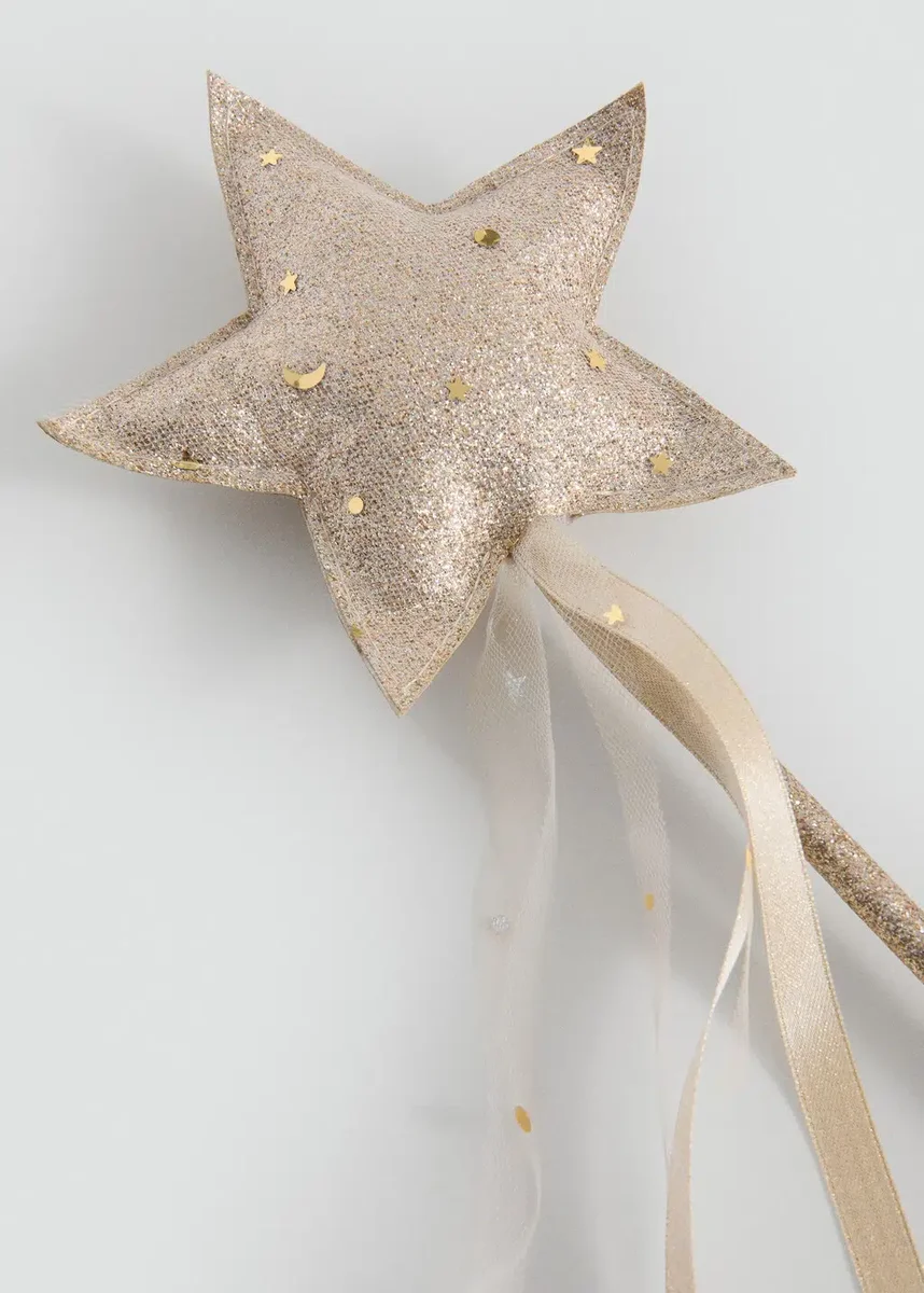 Błyszcząca różdżka. Wzór w gwiazdki. Frędzlowany panel. Kolekcja Halloween.