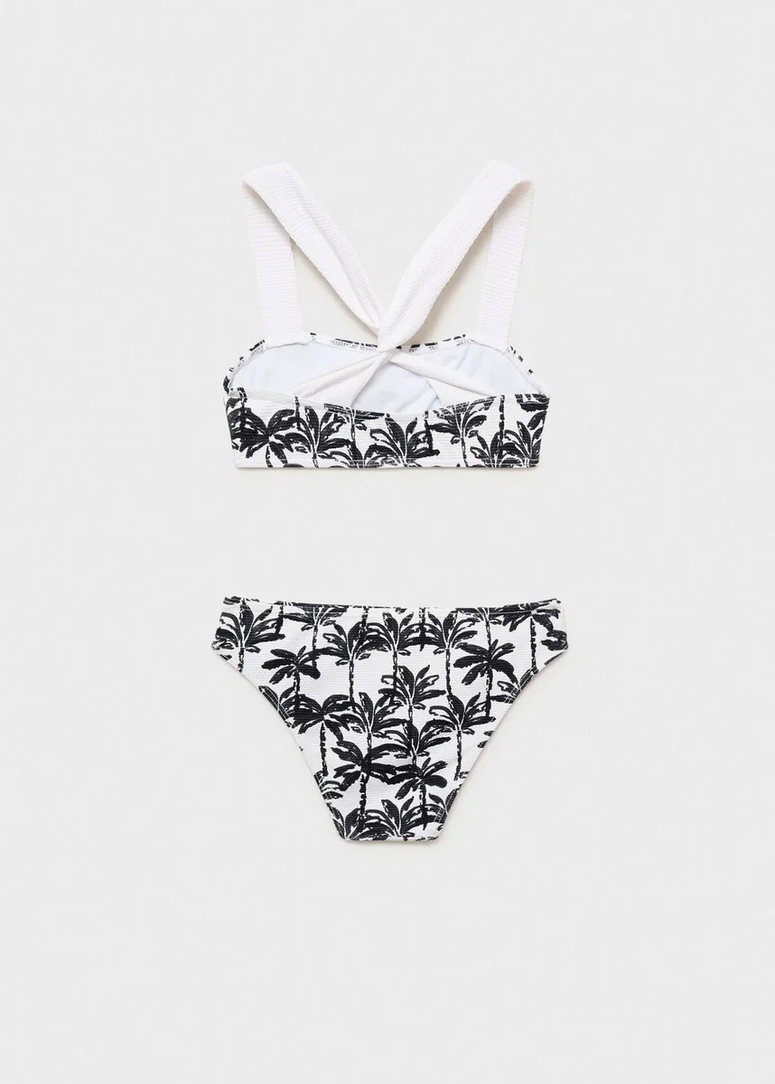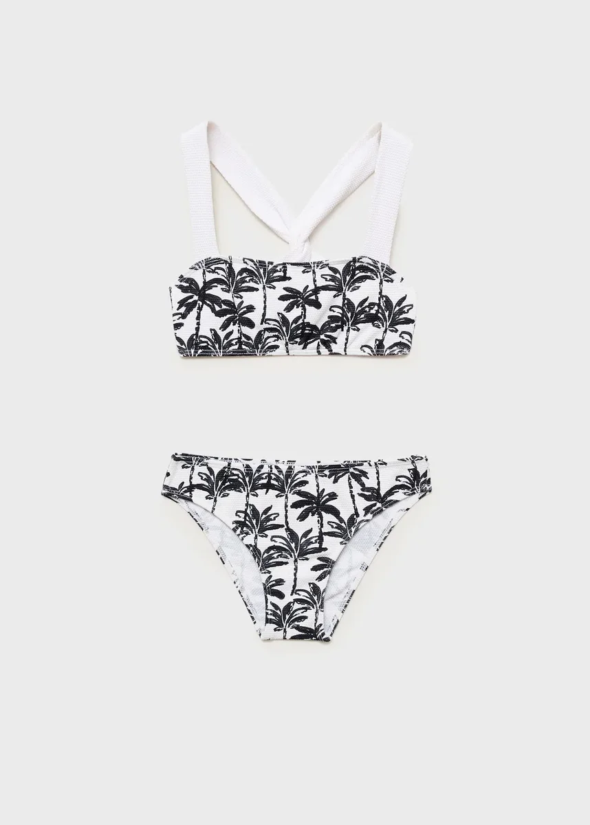 Elastyczny materiał. Nadruk palm. Ozdobne szelki z wiązaniem. Produkt promocyjny.