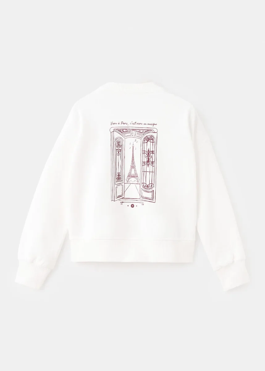 100% bawełna. Prosty krój. Nadrukowany wzór. Okrągły dekolt. Długie rękawy. Ściągacz przy dekolcie, mankietach i u dołu. Nadruk z przodu. Nadruk z tyłu.