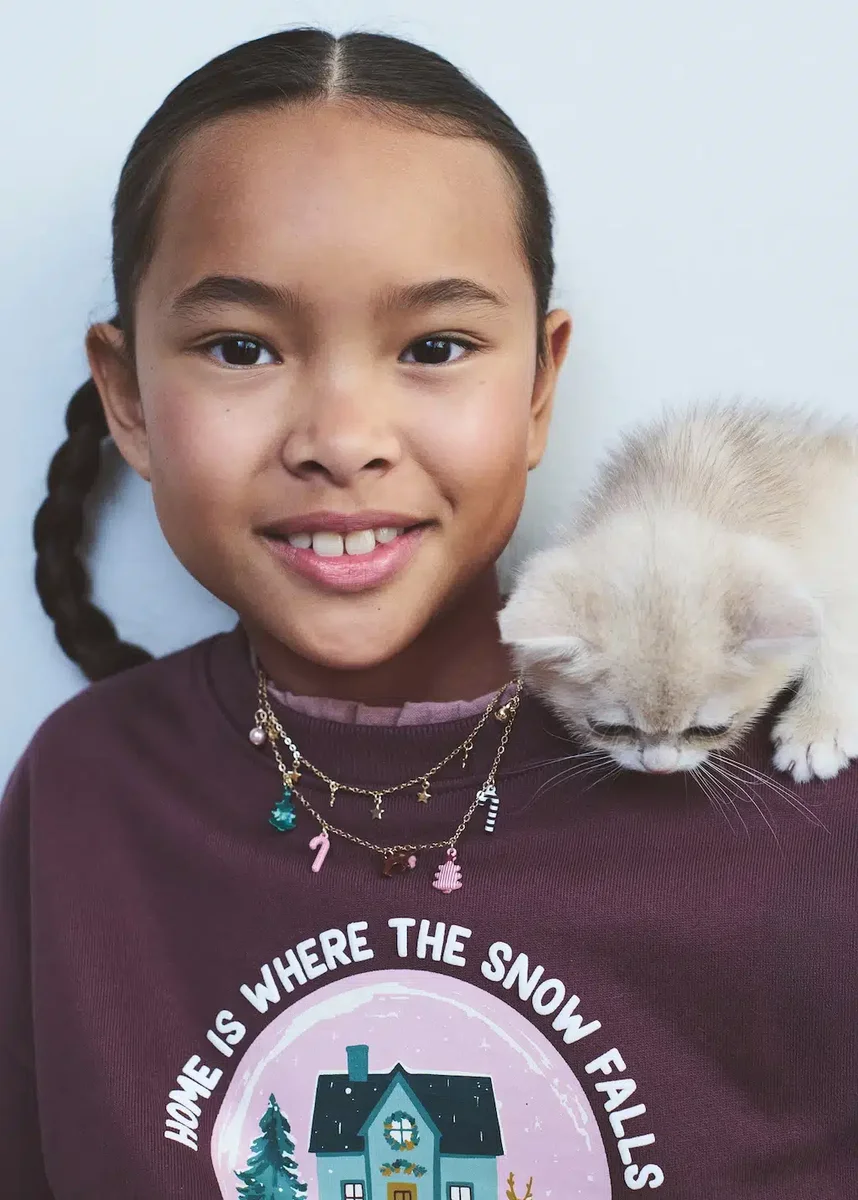 100% bawełna. Prosty krój. Nadrukowany wzór. Świąteczny nadruk. Okrągły dekolt. Długie bufiaste rękawy. Kolekcja świąteczna. Czarny piątek
