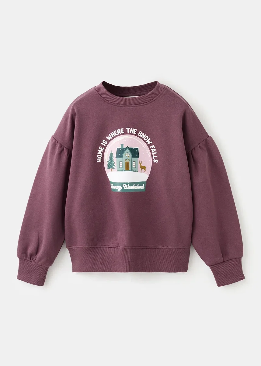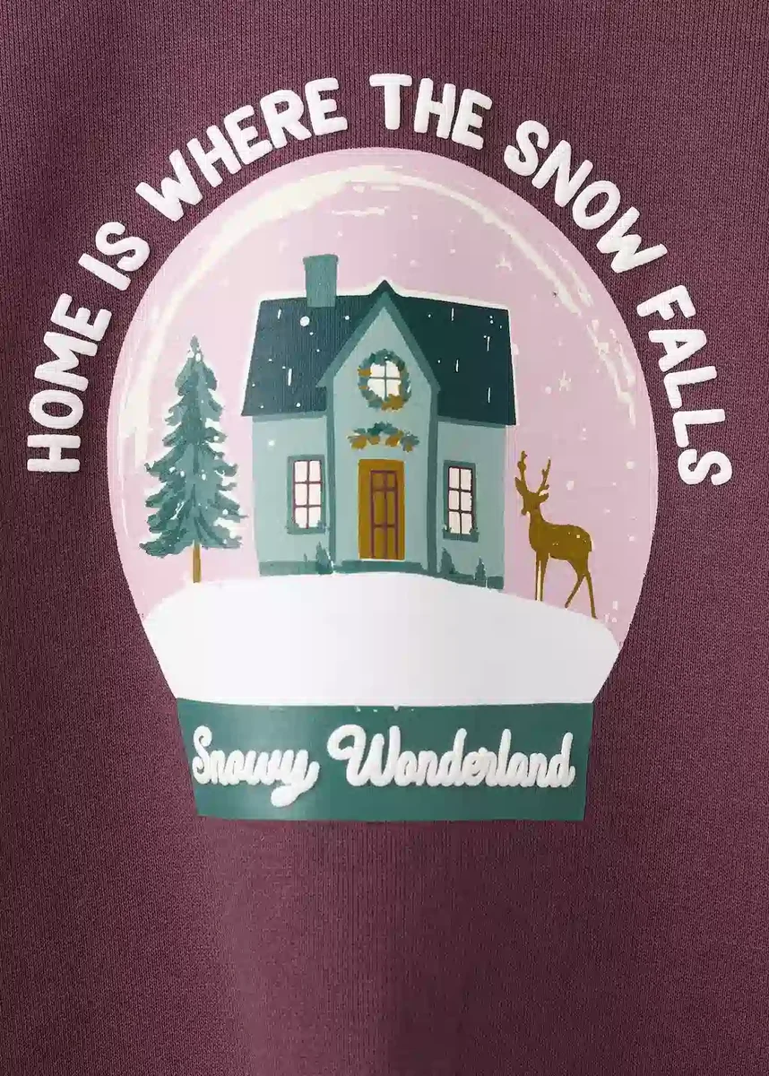 100% bawełna. Prosty krój. Nadrukowany wzór. Świąteczny nadruk. Okrągły dekolt. Długie bufiaste rękawy. Kolekcja świąteczna. Czarny piątek.