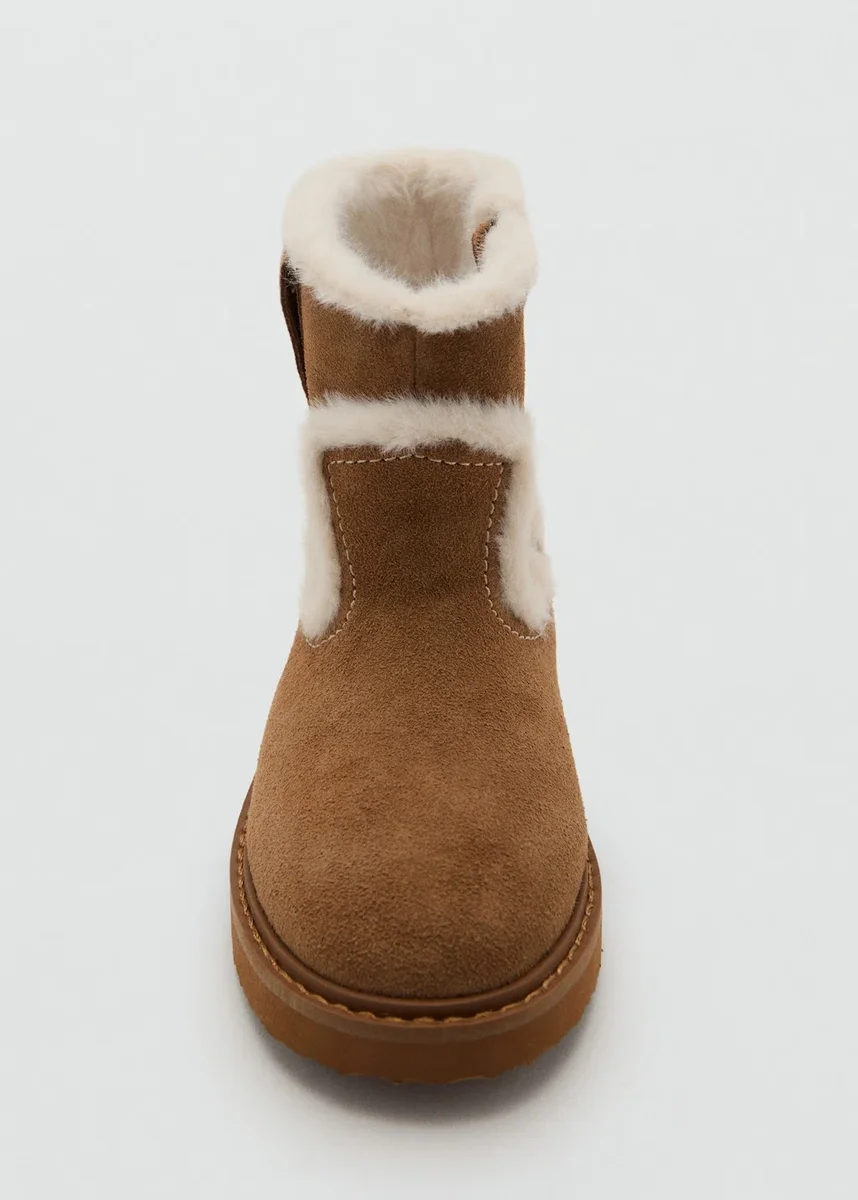 Skóra bydlęca. Zamsz. Podszewka imitująca futro. Detale z futrzanego splotu. Okrągły nosek. Boczne zapięcie na zamek błyskawiczny.