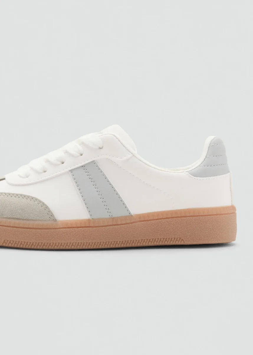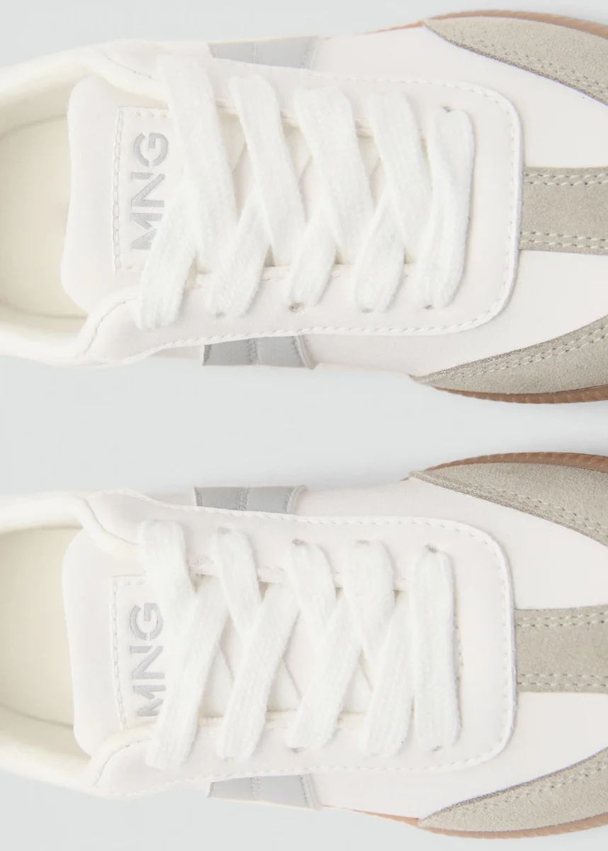 Skórzane detale. Połączony design. Okrągły nosek. Sznurowane zapięcie