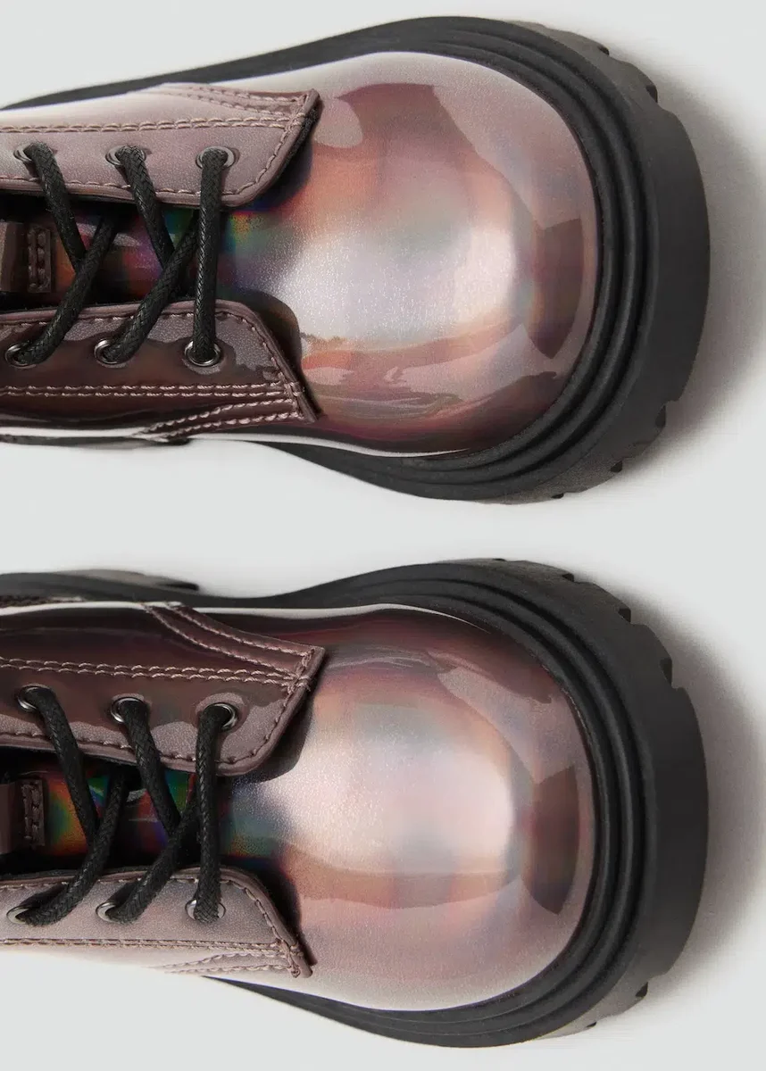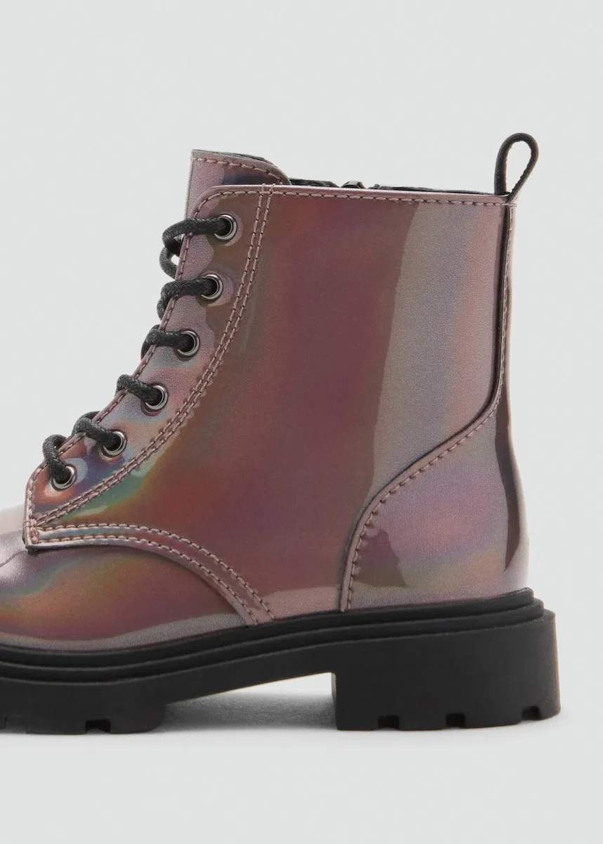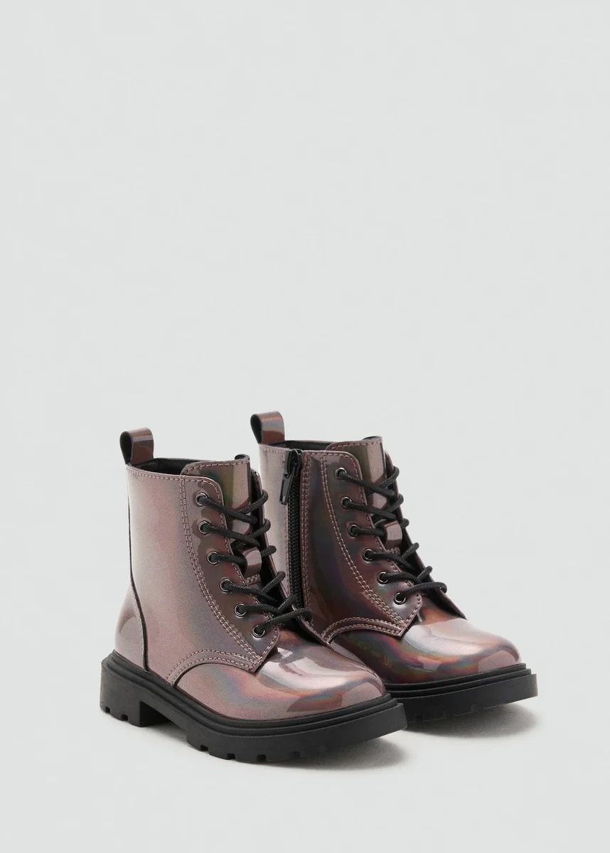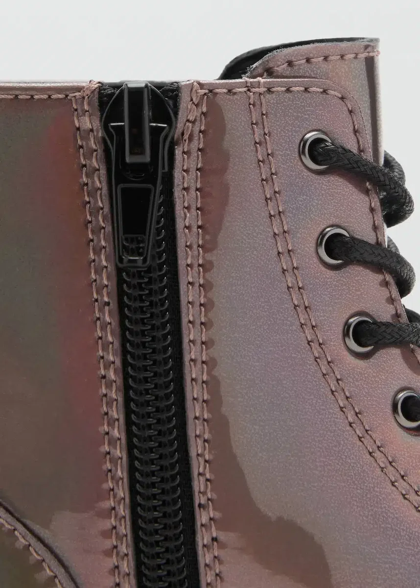 Metaliczne wykończenie. Okrągły nosek. Podeszwa typu track. Regulowane sznurowanie. Zapięcie na zamek błyskawiczny. Czarny piątek