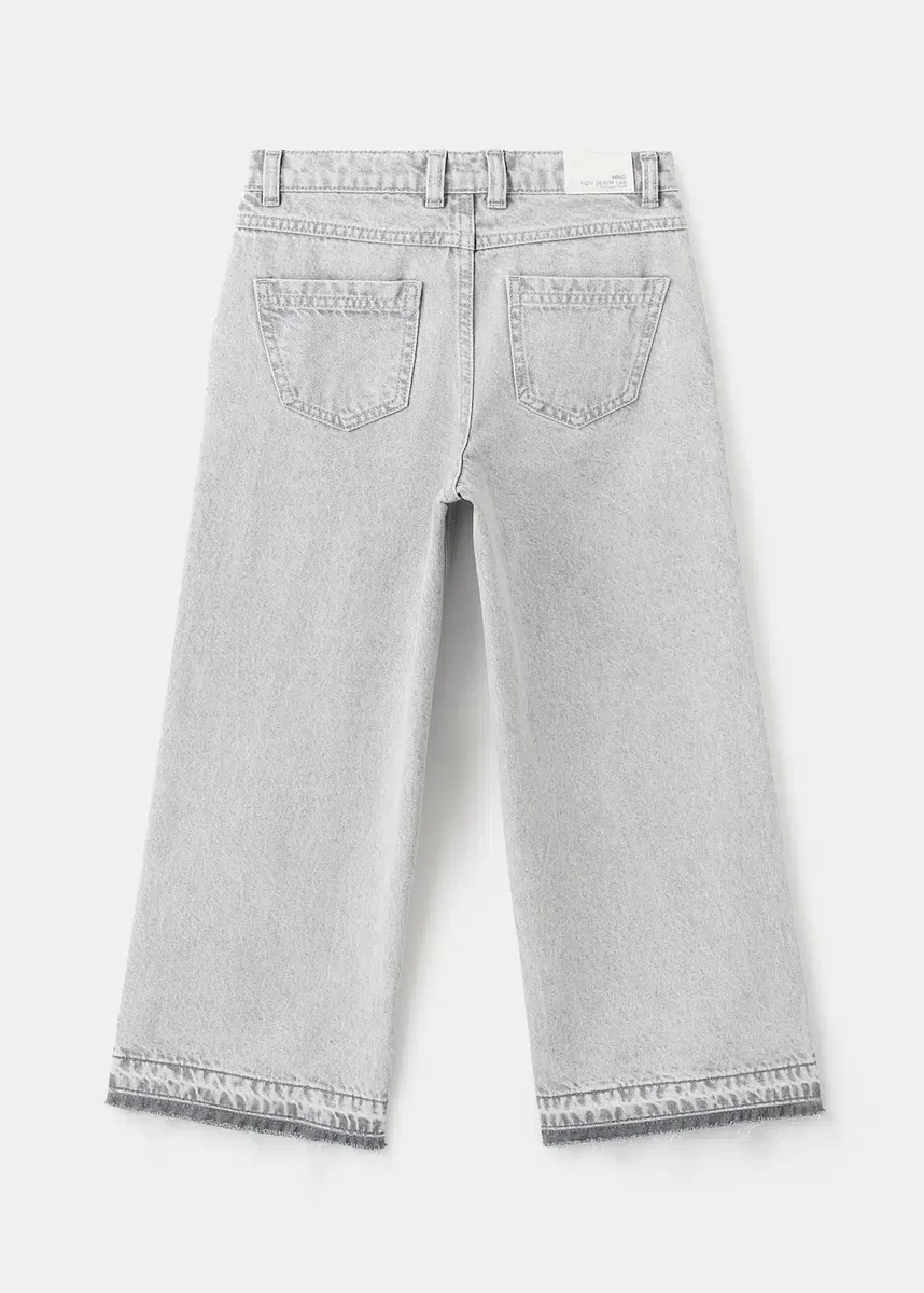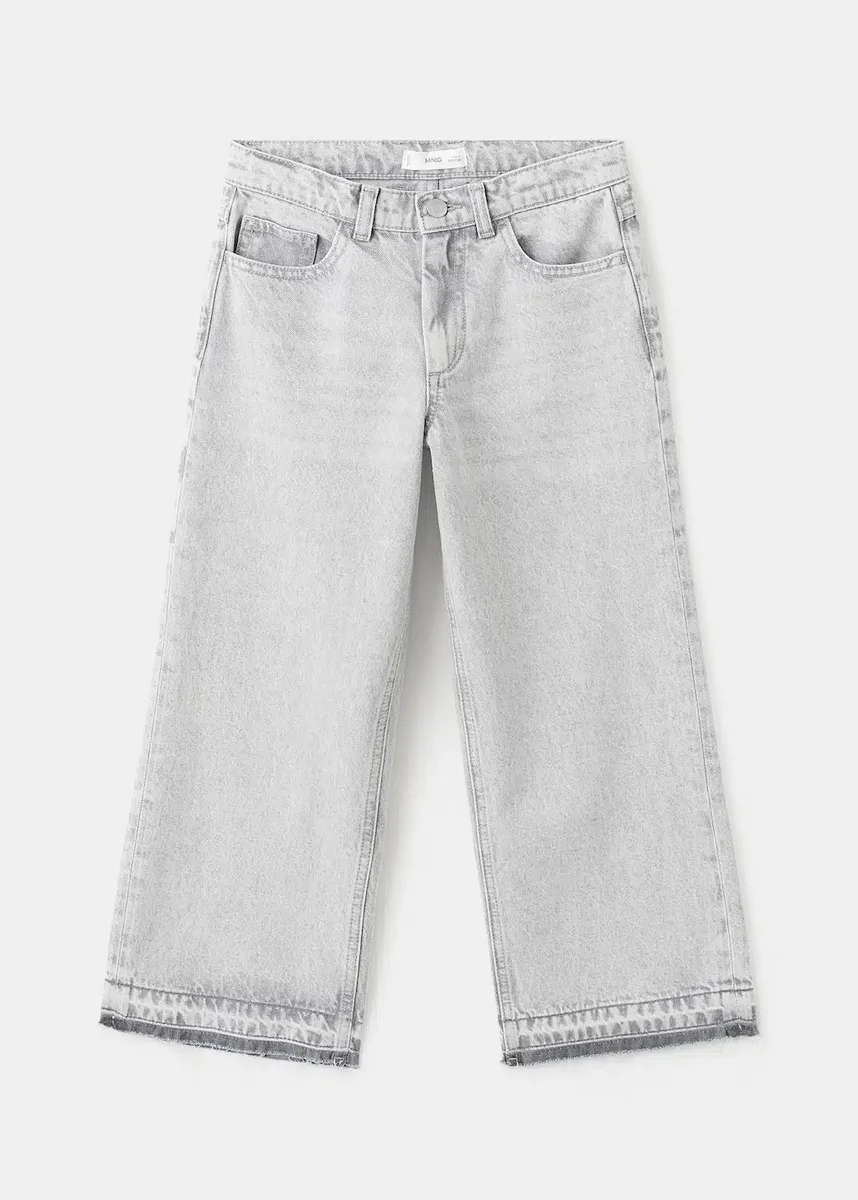 Standardowa długość. Prosty krój. Płaska struktura średnia. Regularny stan. 100% bawełna. Bawełniana tkanina dżinsowa. Krój culotte. Szlufki. Zapięcie na zamek błyskawiczny i guzik. Regulowany elastyczny pas z guzikiem. Kieszeń na monety. Dwie kieszenie boczne. Naszywane kieszenie z tyłu. Bezszwowy brzeg. Postrzępiony brzeg