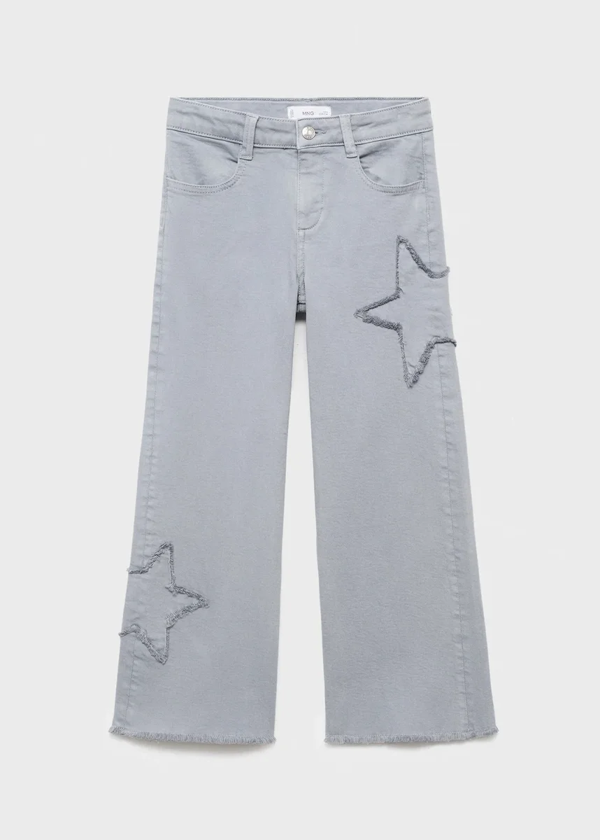 Wykonane z elastycznej bawełny, te długie spodnie mają haftowany wzór gwiazdek. Posiadają szlufki, zapięcie na guzik i zamek błyskawiczny, dwie kieszenie boczne i dwie naszywane kieszenie z tyłu. Brzeg spodni jest postrzępiony