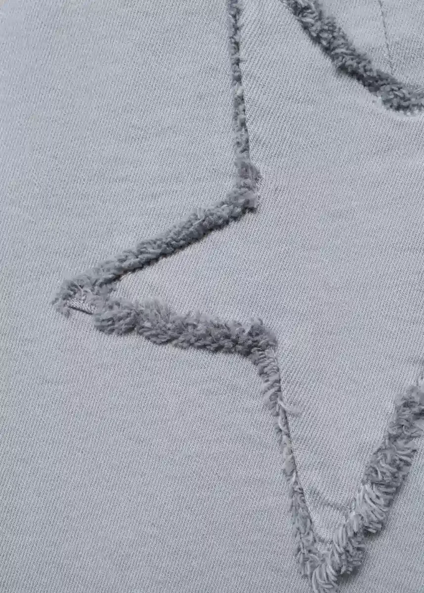 Wykonane z elastycznej bawełny, te długie spodnie mają haftowany wzór gwiazd. Posiada szlufki, zapięcie na guzik i zamek błyskawiczny, dwie kieszenie boczne i dwie naszywane kieszenie z tyłu. Brzeg spodni jest postrzępiony.