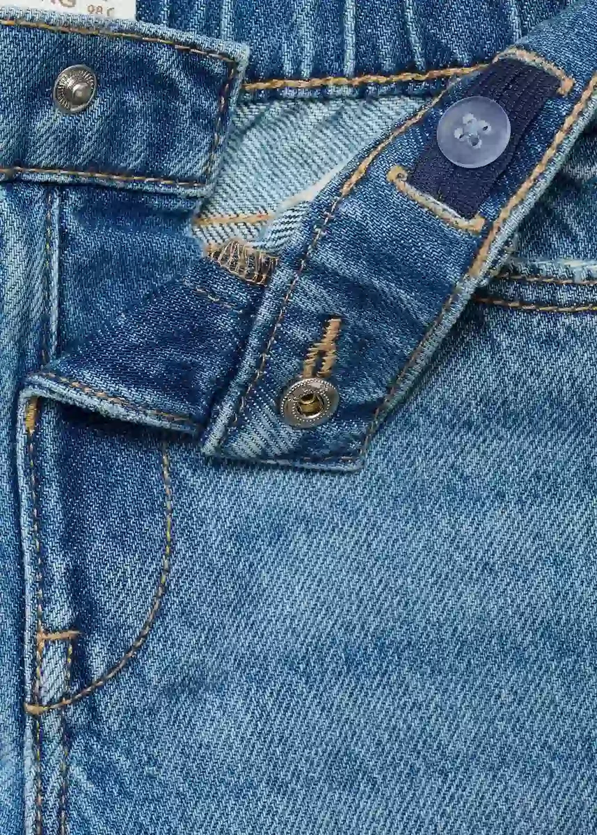 100% bawełna. Długi krój. Krój culotte. Elastyczny pas. Szlufki. Zapięcie na guziki. Regulowany pas z gumką. Dwie kieszenie boczne. Dwie naszywane kieszenie z tyłu. Powrót do szkoły.
