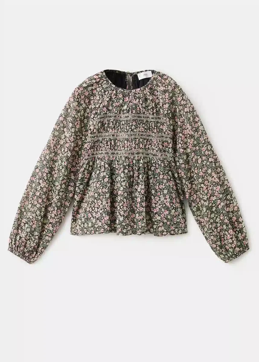 100% bawełna. Prosty krój. Kwiatowy wzór. Okrągły dekolt. Długie rękawy z elastycznymi mankietami. Marszczone wykończenie. Haftowane detale. Zapięcie na guziki przy szyi.