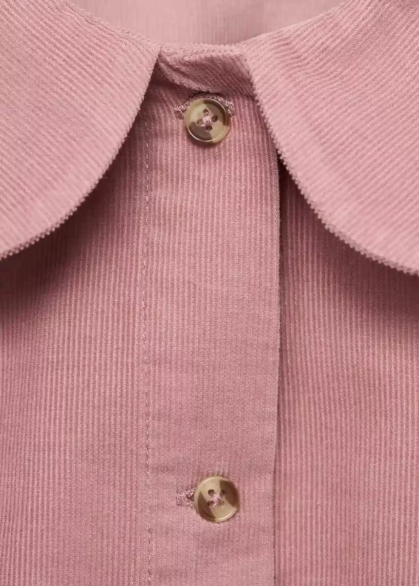 100% bawełna. Materiał sztruksowy. Prosty krój. Kołnierzyk typu Peter Pan. Długie rękawy z prążkowanymi wykończeniami. Zapięcie na guziki z przodu. Czarny piątek