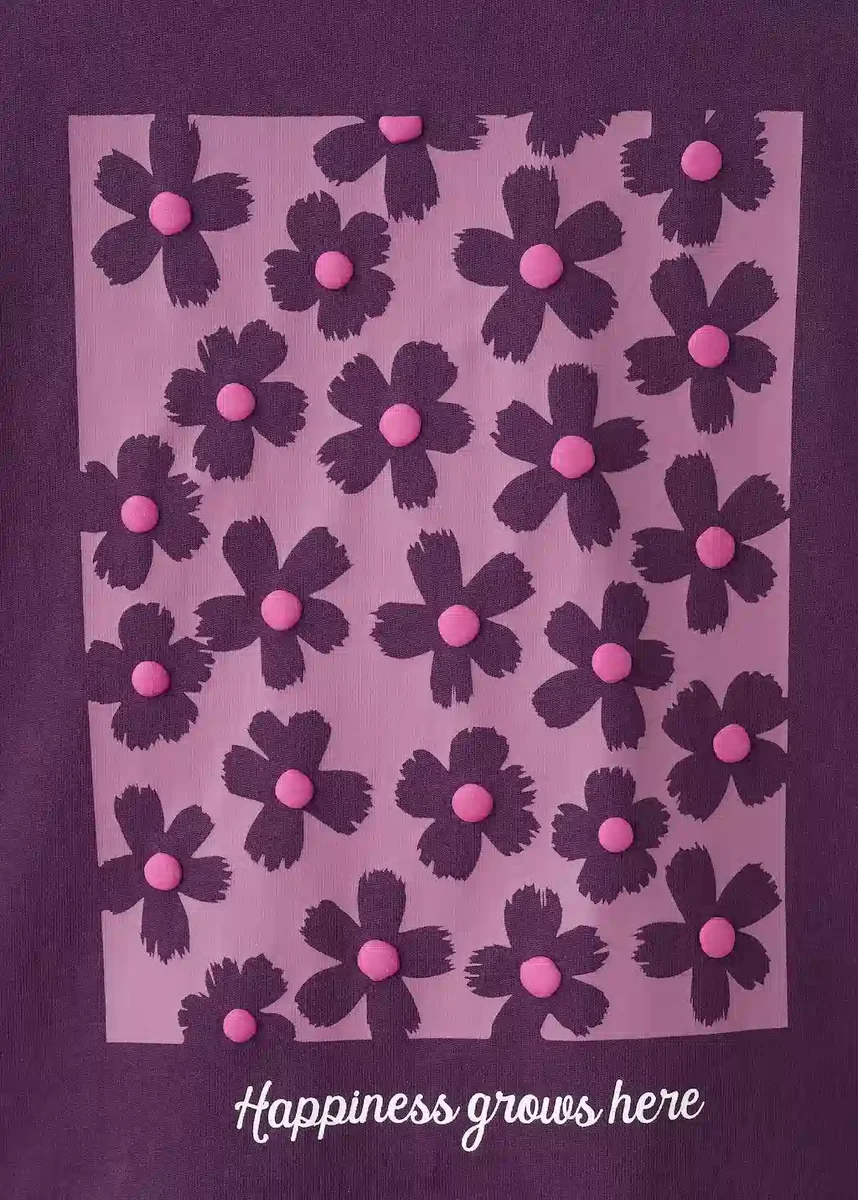 100% bawełna. Nadruk. Kwiatowy wzór. Okrągły dekolt. Długie rękawy.