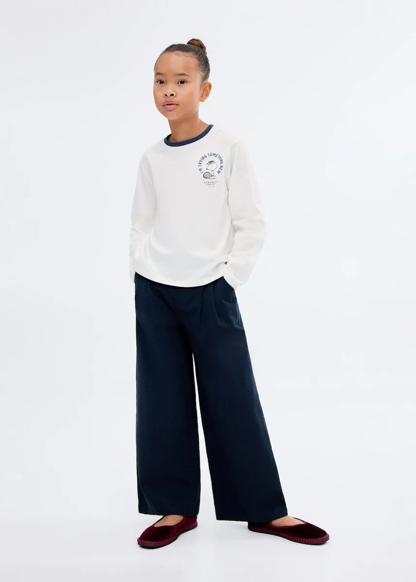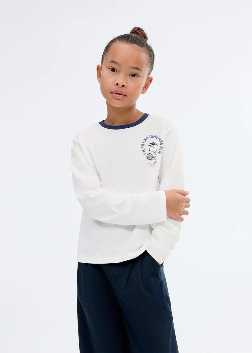 100% bawełna. Prosty krój. Nadrukowany wzór. Kontrastowy okrągły dekolt. Długie rękawy. Nadruk na przodzie. Nadruk tekstu na plecach. Nadruk tłoczony. Powrót do szkoły