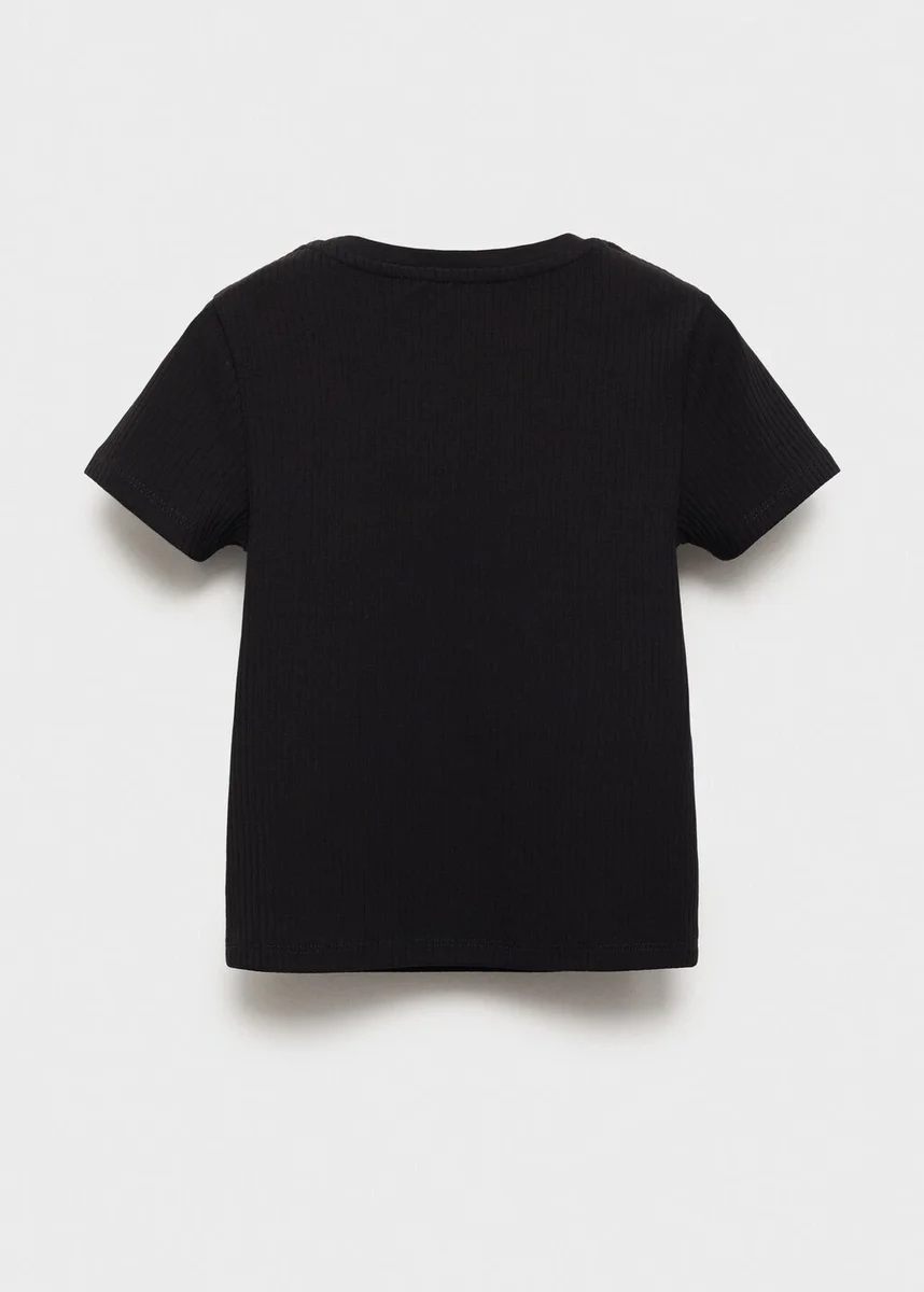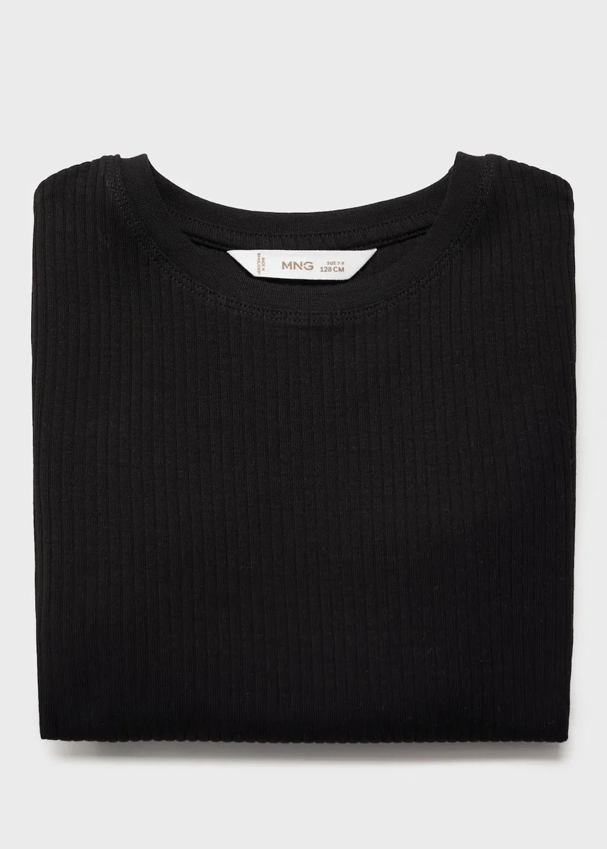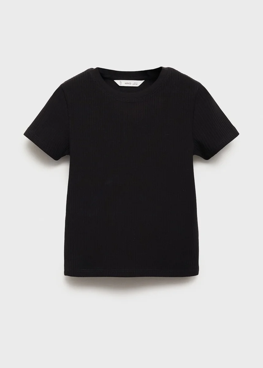 Tkanina bawełniana. Tkanina elastyczna. Prążkowany krój. Prosty krój. Okrągły dekolt. Krótkie rękawy.