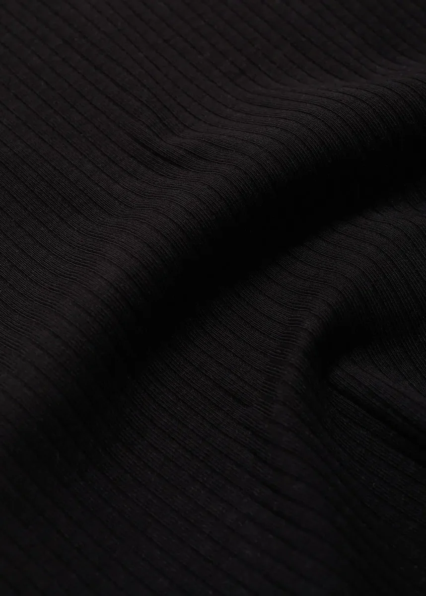 Tkanina bawełniana. Tkanina elastyczna. Prążkowany wzór. Prosty krój. Okrągły dekolt. Krótkie rękawy