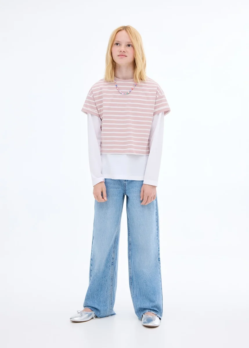 100% bawełna. Krótki fason. Paski. Okrągły dekolt. Krótkie rękawy raglanowe.