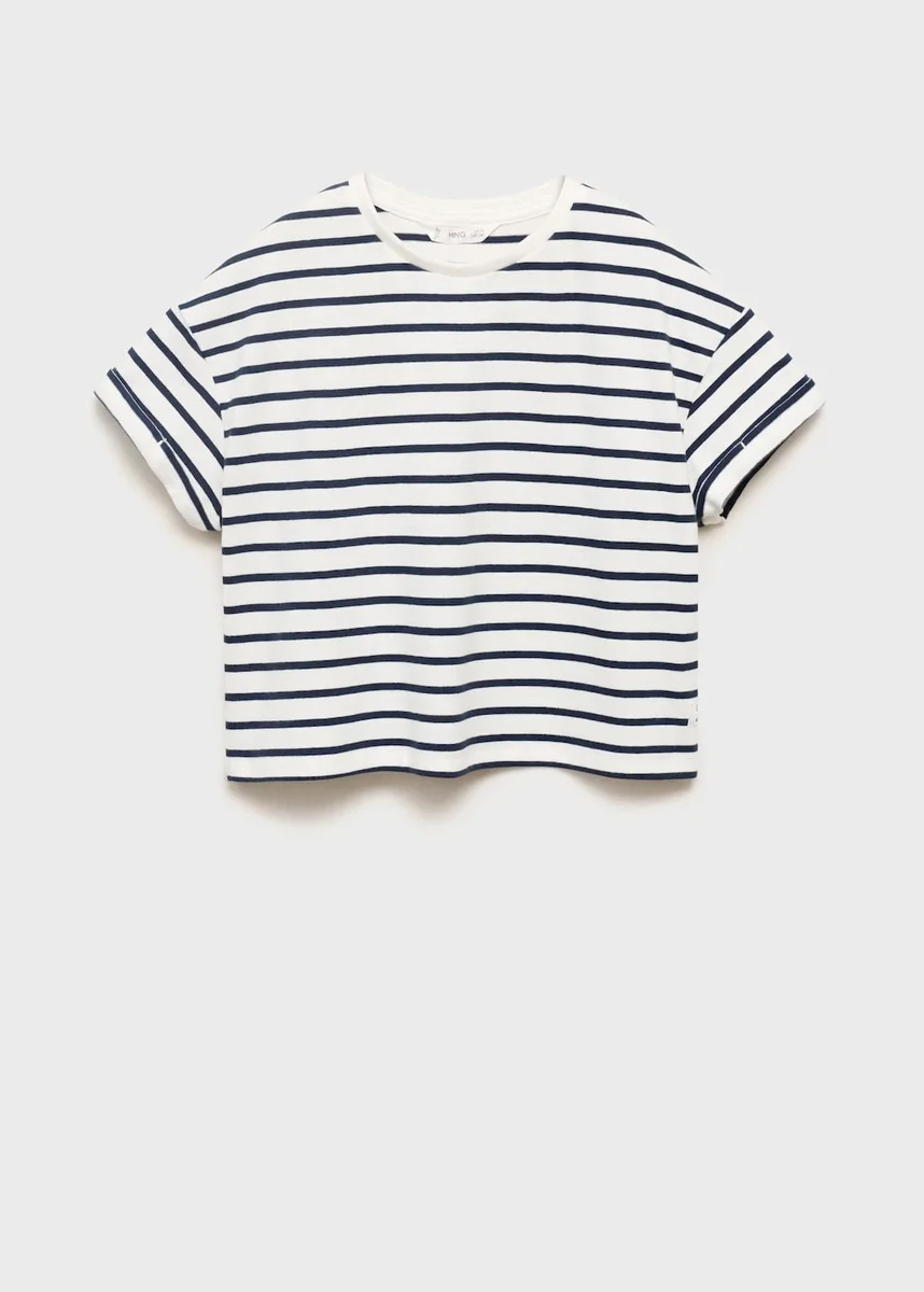 100% bawełna. Krótki fason. Paski. Okrągły dekolt. Krótkie rękawy raglanowe.