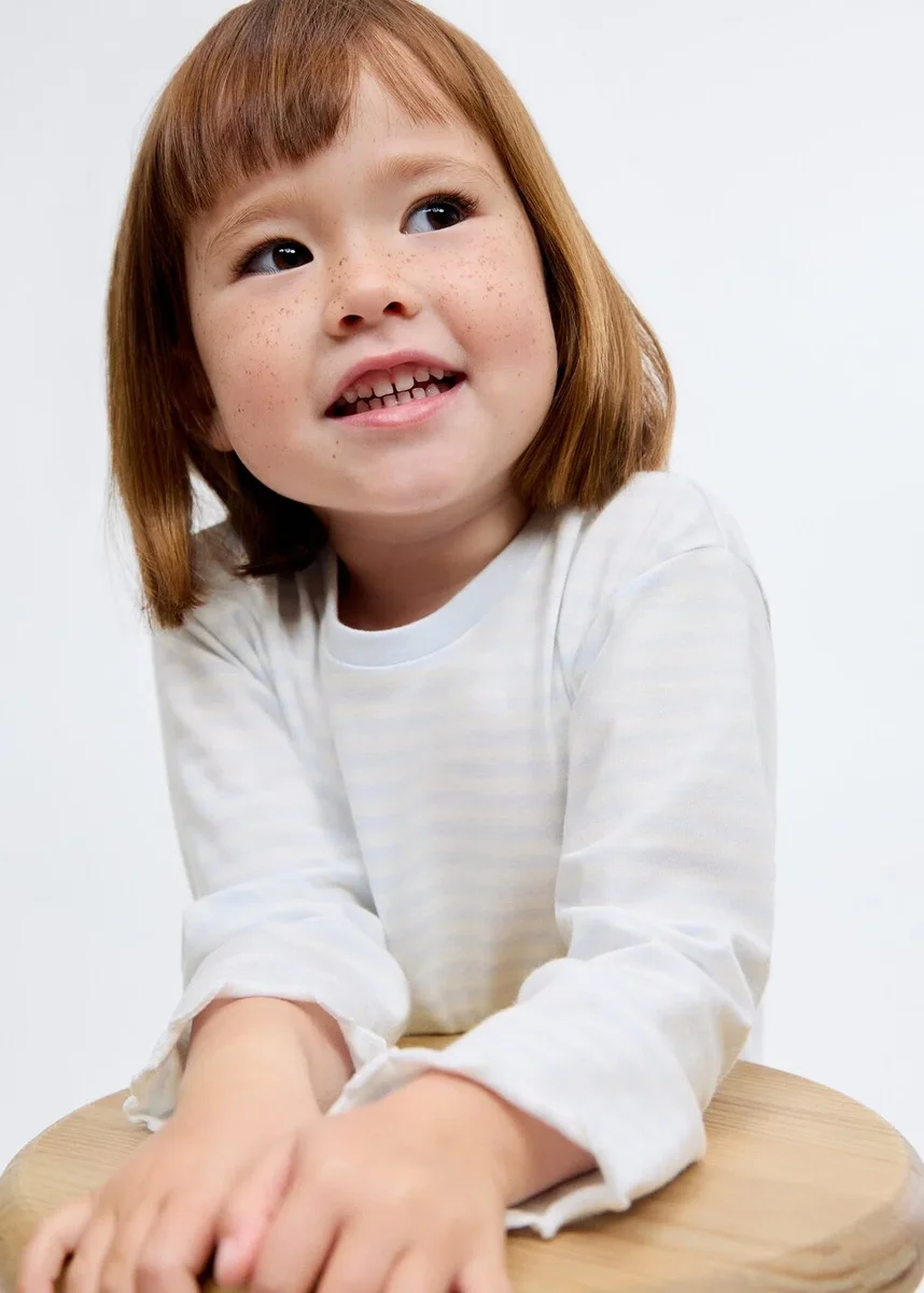 Wykonana w 100% z bawełny, ta odzież ma prosty krój w paski. Kontrastujący okrągły dekolt nadaje jej charakterystyczny wygląd, a długie rękawy dopełniają jej styl.