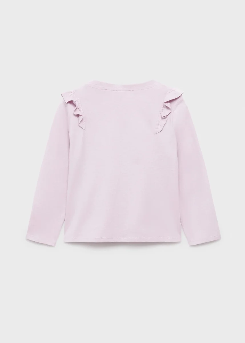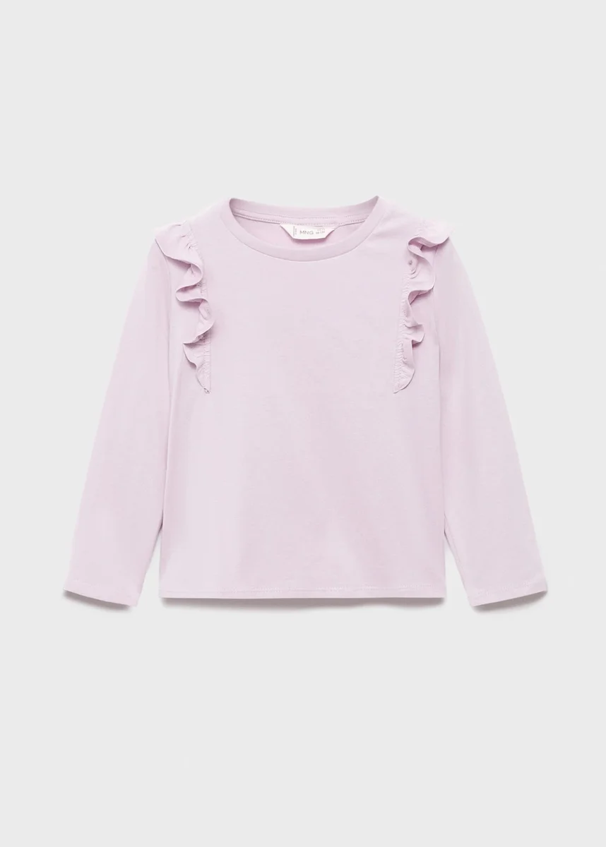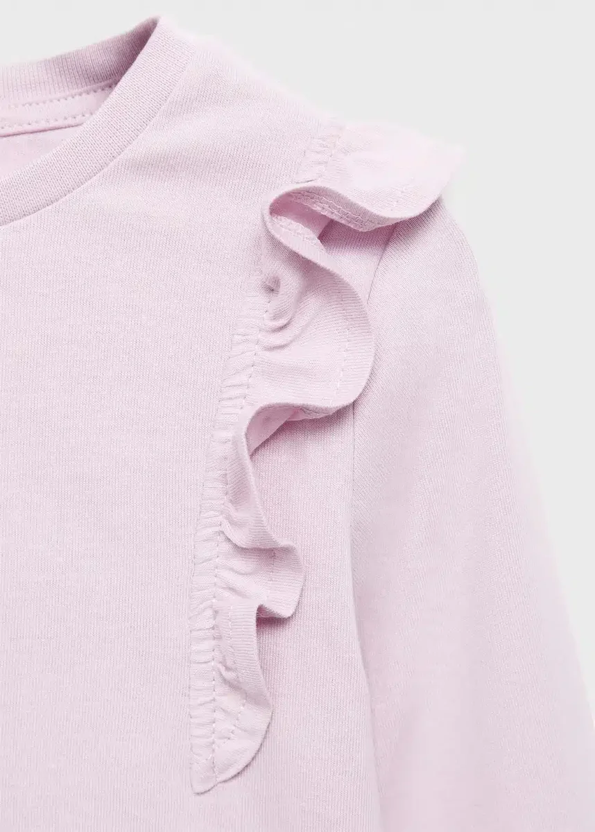 100% bawełna. Prosty krój. Okrągły dekolt. Falbanki na ramionach. Długi rękaw.