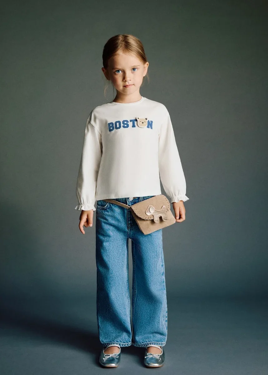 Wykonana w 100% z bawełny, ta koszulka ma prosty krój i haft z misiem. Dekolt jest okrągły, a długie rękawy mają elastyczne i marszczone mankiety. Z przodu znajduje się nadrukowany tekst.