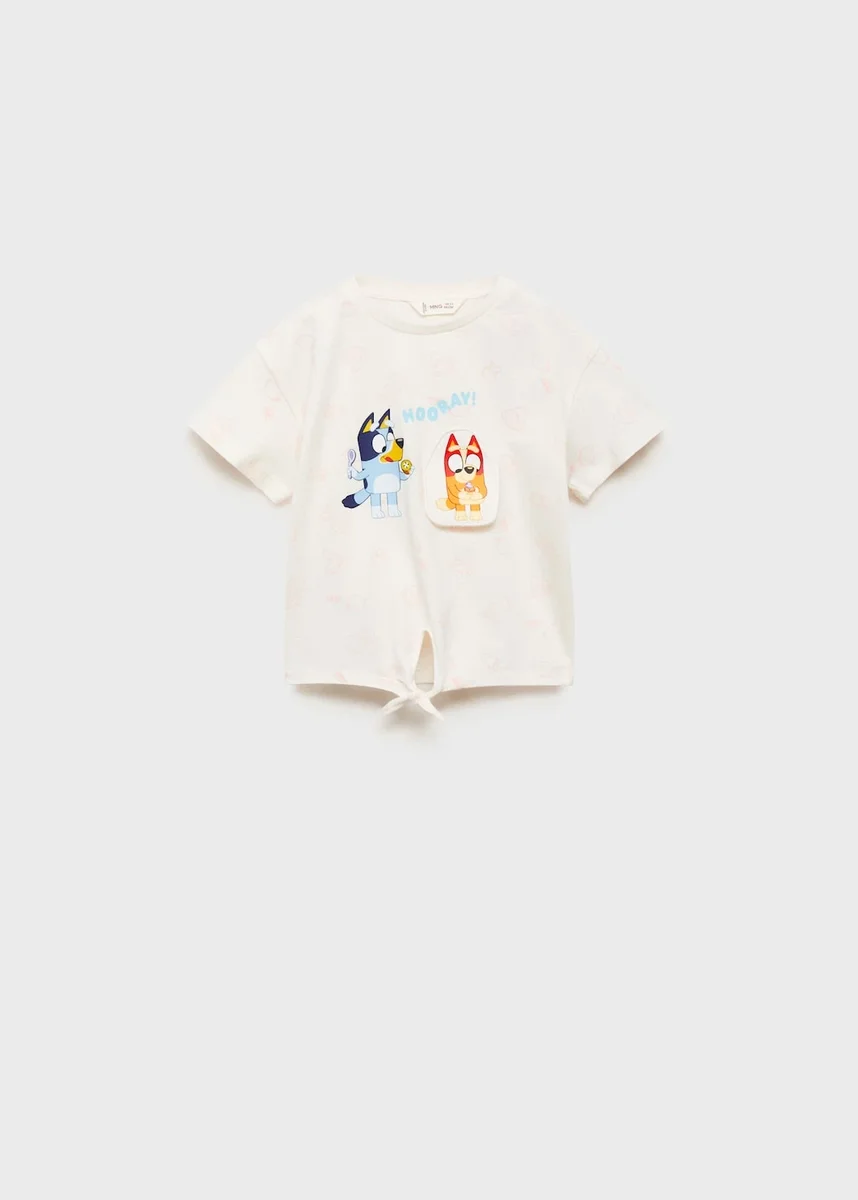 100% bawełna. Wzór Bluey. Prosty krój. Okrągły dekolt. Krótkie rękawy. Haftowane detale. Nadruk na piersi. Detal w postaci kokardki na dole. Licencje.