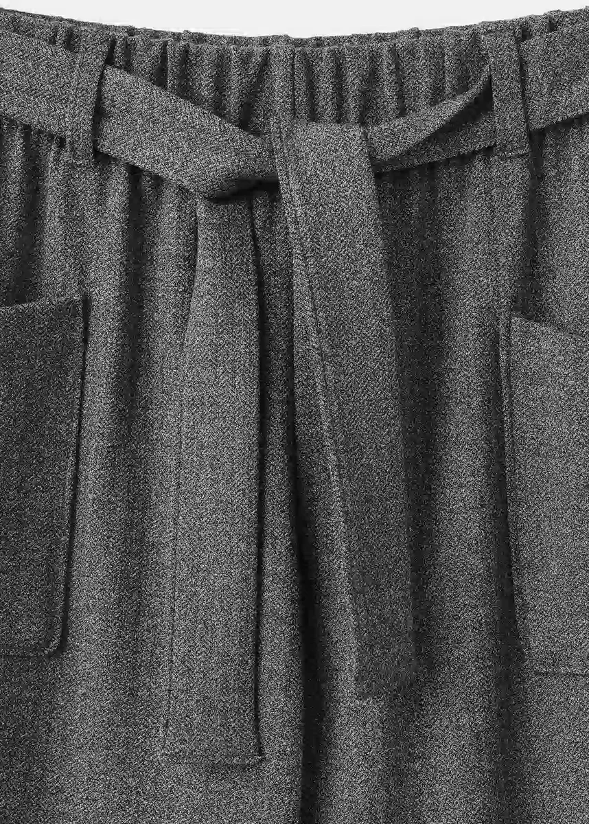 Wykonane z płynnej dzianiny, te długie spodnie mają szerokie nogawki. Elastyczny pas z regulowanym wiązaniem zapewnia wygodę, a dwie naszywane kieszenie z przodu dodają funkcjonalności