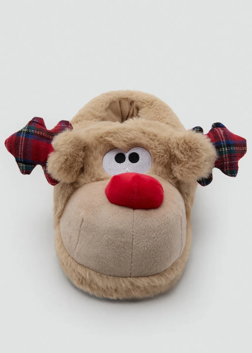 Materiał futrzany. Wzór renifera. Ozdoba świąteczna. Kapcie. Kolekcja świąteczna. Czarny piątek