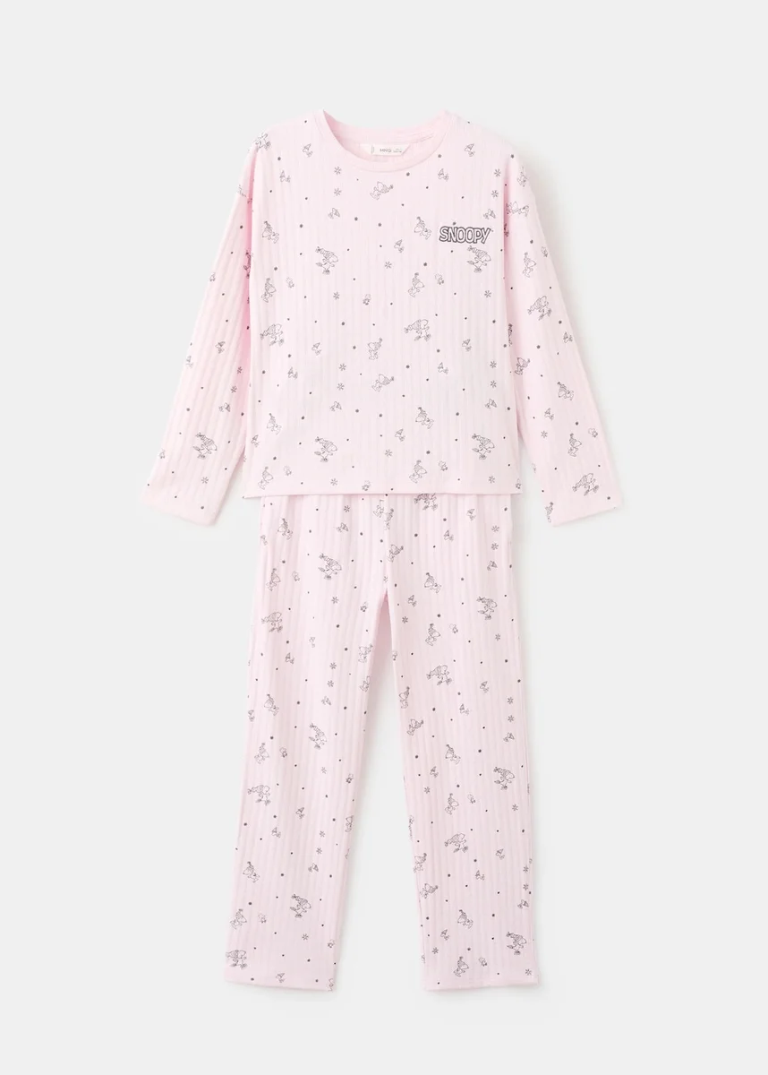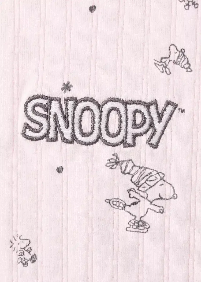 Tkanina bawełniana. Tkanina elastyczna. Nadruk Snoopy. Wzór Snoopy. Długi krój. Haftowany wzór. Elastyczny pas.