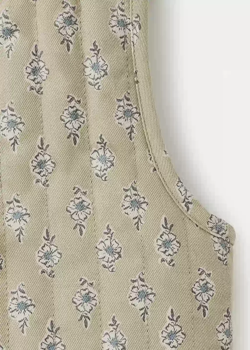 100% bawełna. Nadruk kwiatowy. Dekolt w szpic. Bez rękawów. Zapięcie na wiązanie. Całkowity wygląd