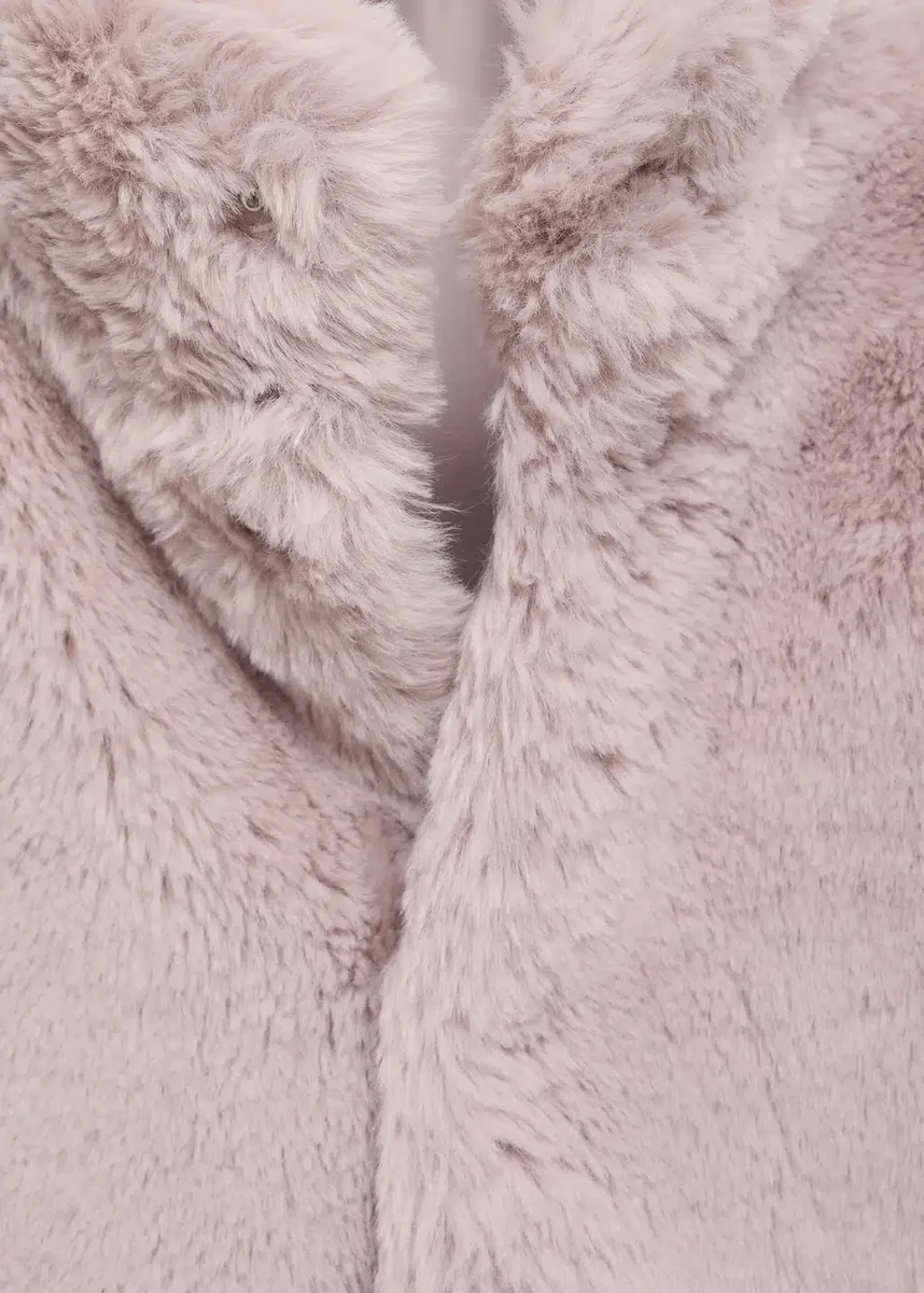 Efekt futra. Prosty krój. Okrągły dekolt. Długi rękaw. Zapięcie na guziki. Dwie kieszenie boczne. Podszewka wewnętrzna. Kolekcja świąteczna