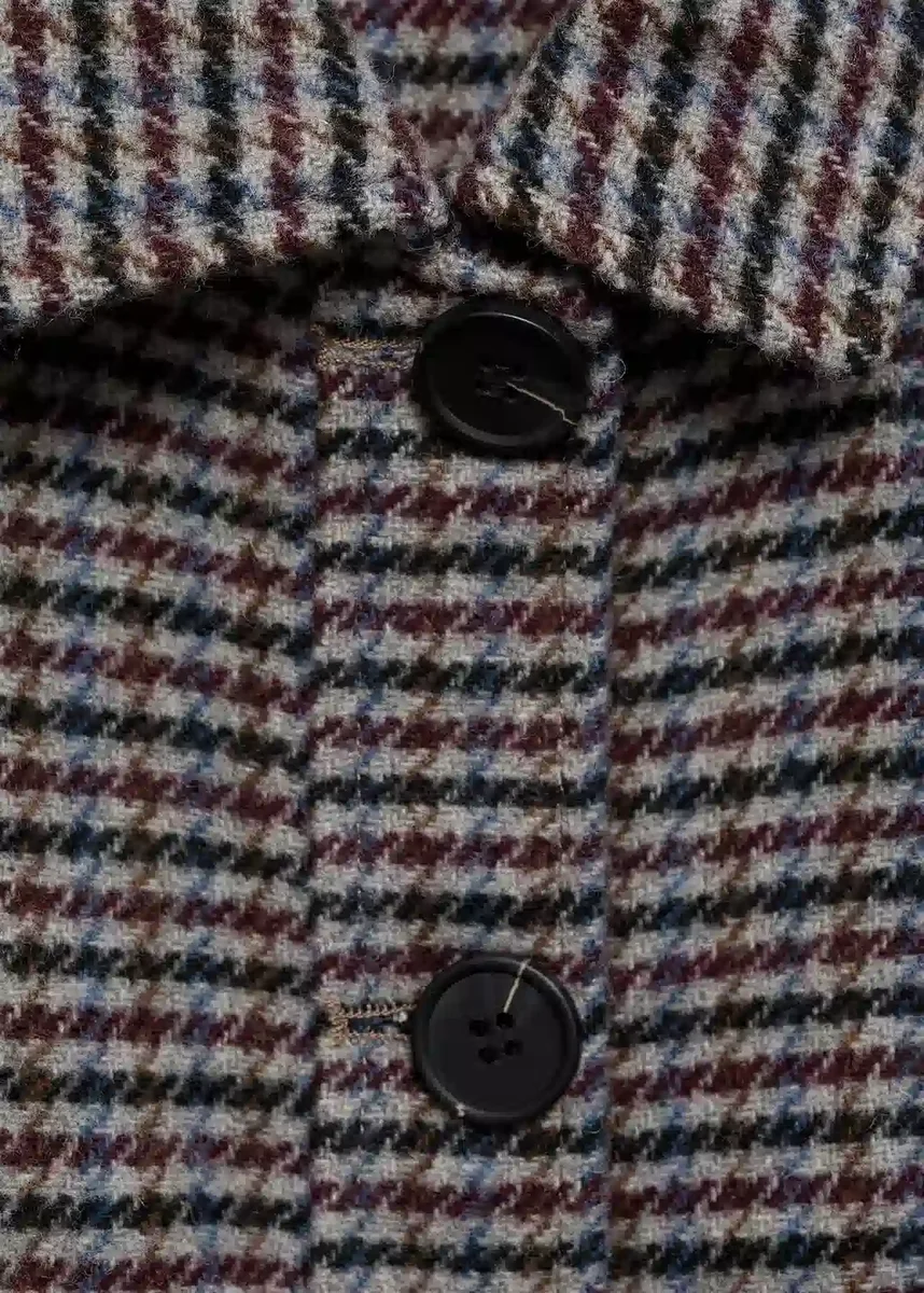 Tkanina wełniana. Tkanina tweedowa. Prosty krój. Kołnierzyk koszulowy. Długi rękaw. Zapięcie na guziki z przodu. Dwie kieszenie z przodu.