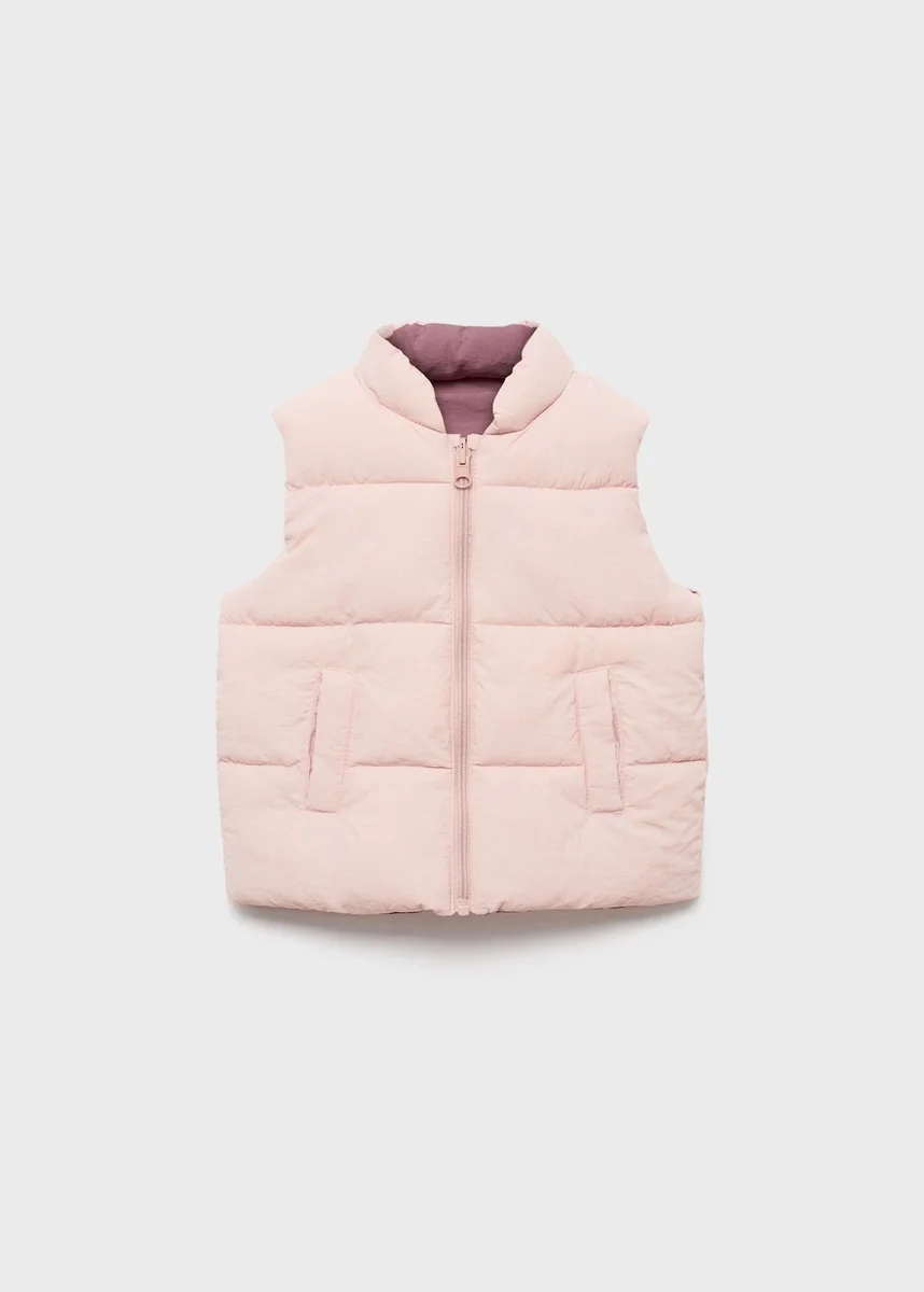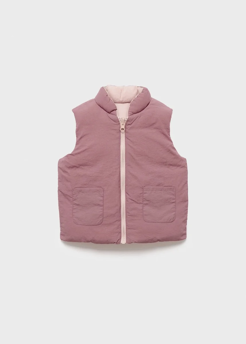 Pikowany wzór. Prosty krój. Dwustronny wzór. Okrągły dekolt. Bez rękawów. Dwie kieszenie boczne. Zapięcie na zamek błyskawiczny z przodu. Podszewka wewnętrzna
