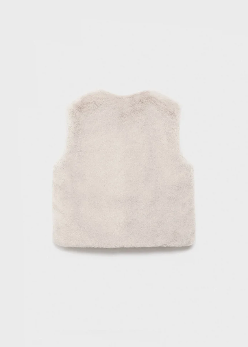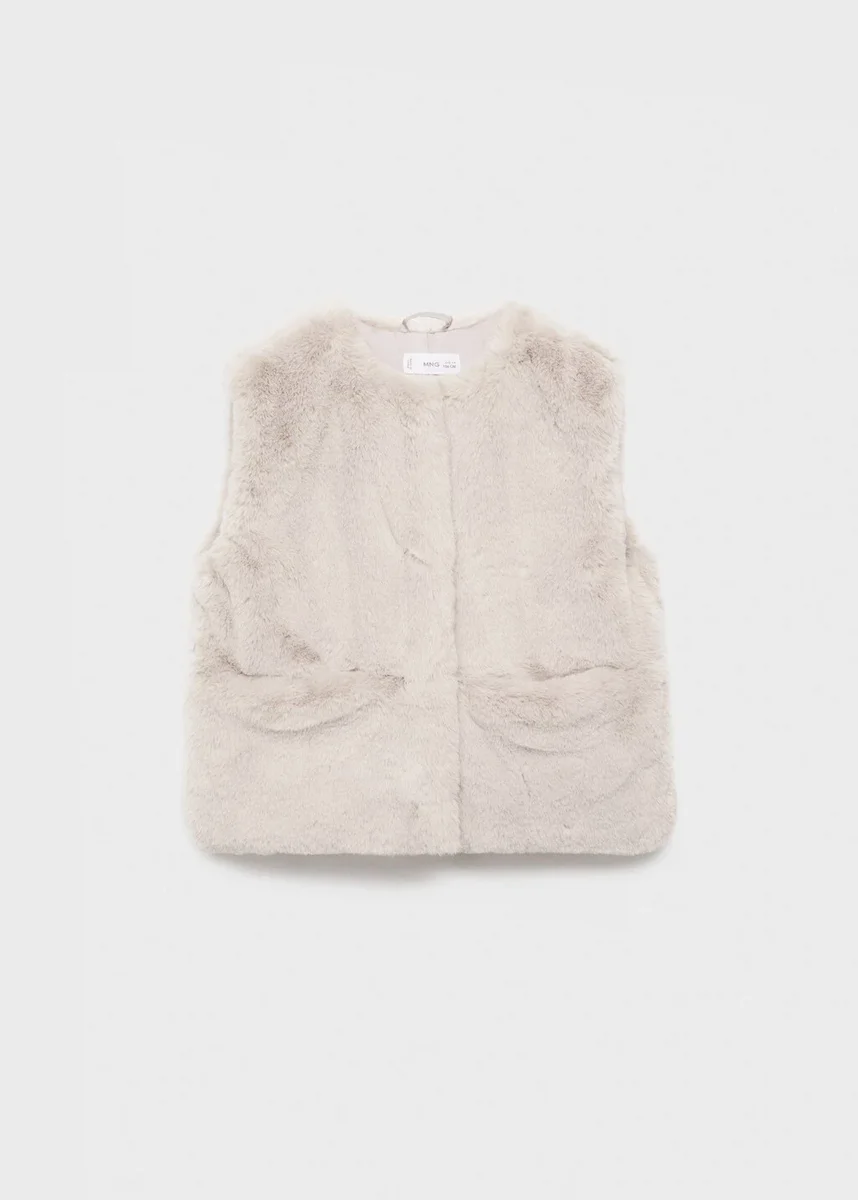 Materiał futrzany. Z podszewką wewnętrzną. Okrągły dekolt. Zapięcie na zatrzaski. Bez rękawów. Dwie kieszenie z przodu. Kolekcja świąteczna. Czarny piątek.