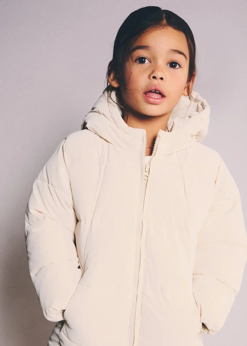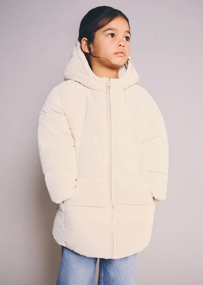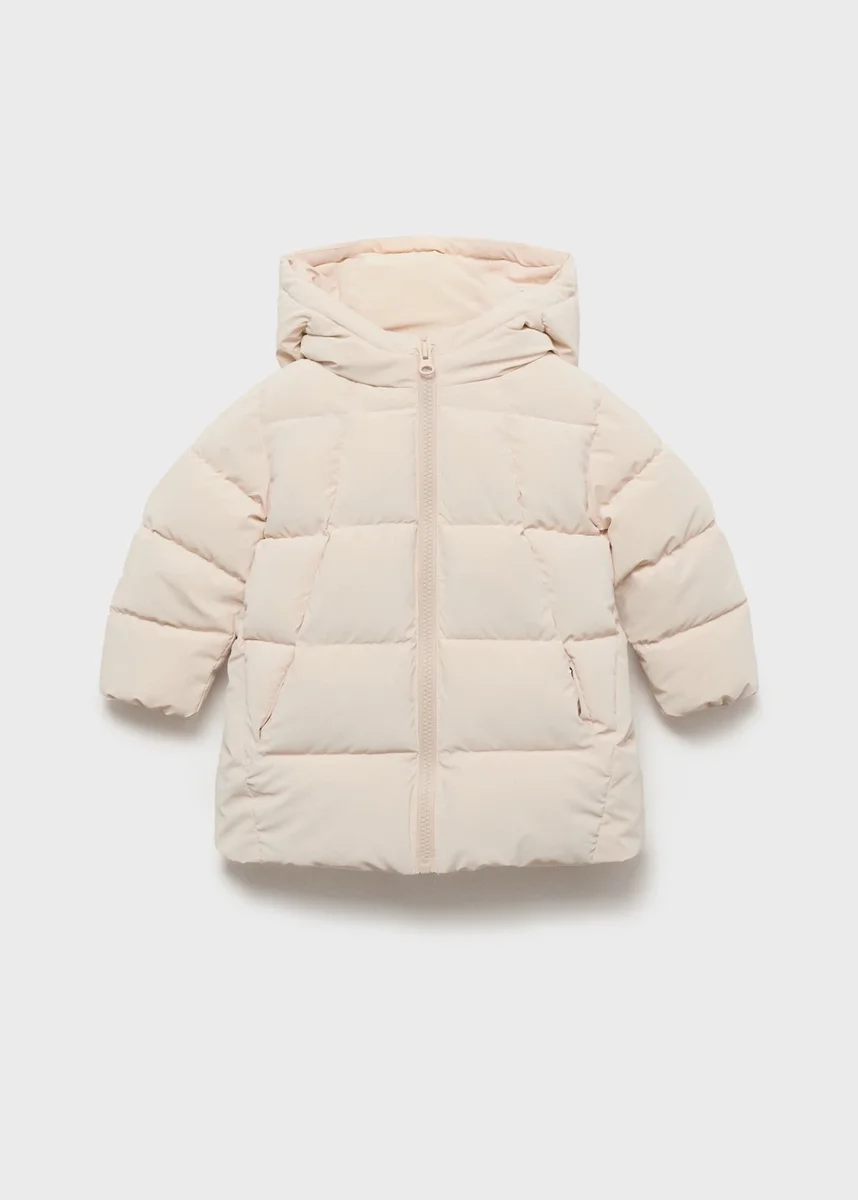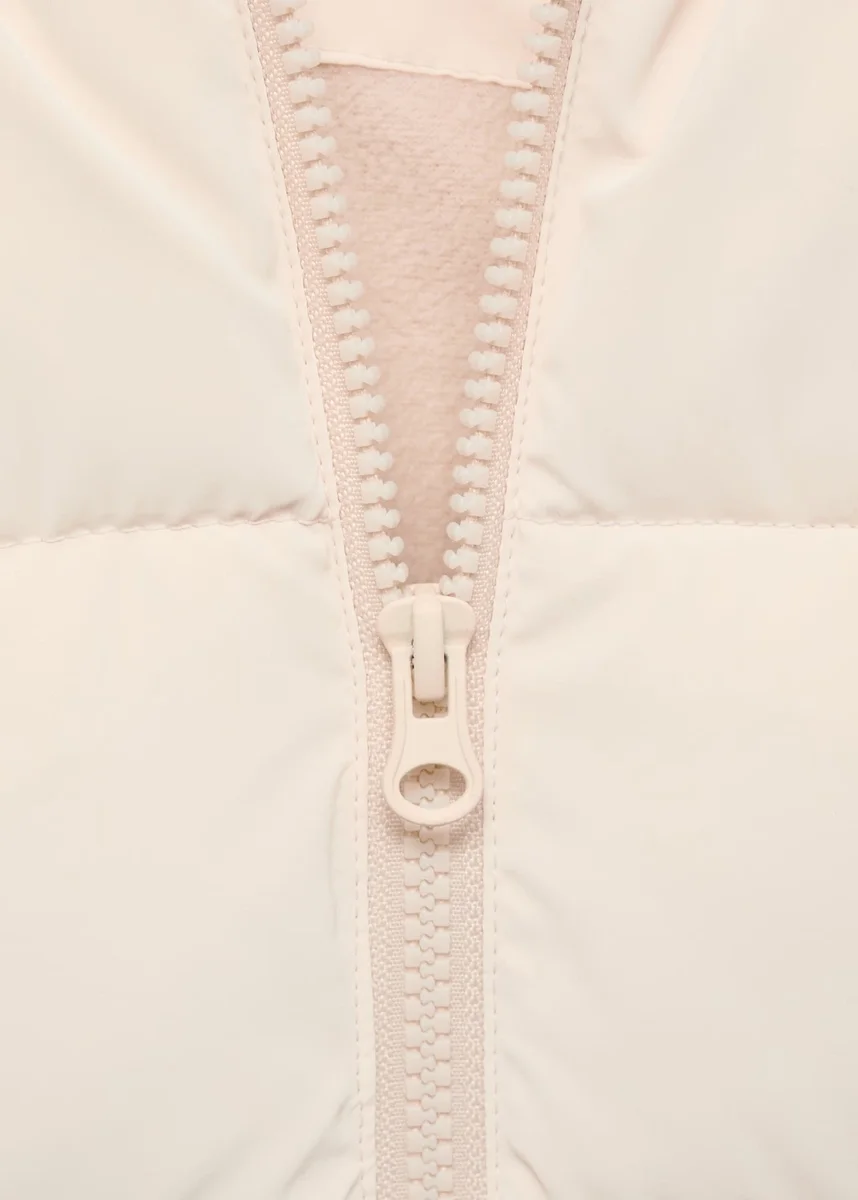 Pikowana tkanina. Tkanina wodoodporna. Prosty krój. Z kapturem. Długi rękaw. Zapięcie na zamek błyskawiczny. Dwie kieszenie boczne. Wewnętrzna podszewka z polaru