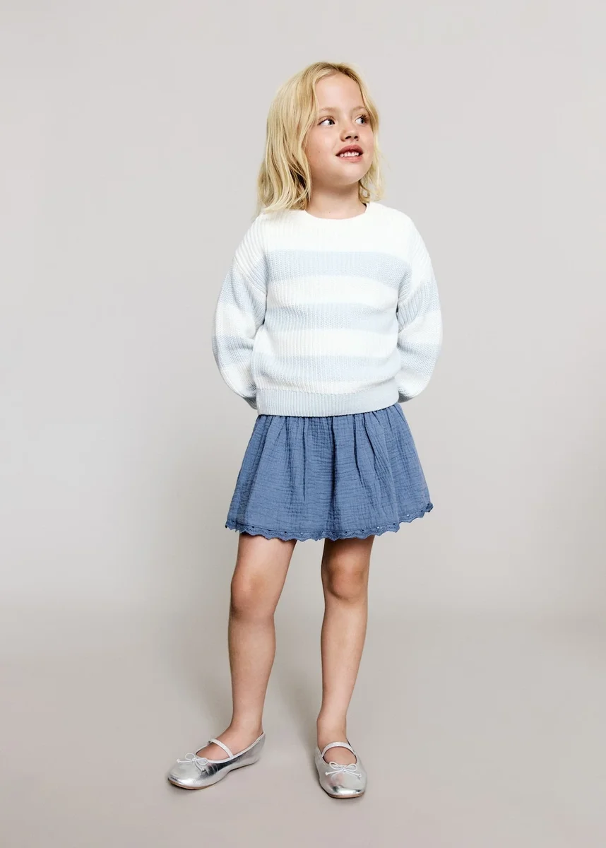Ta spódnica, wykonana w 100% z teksturowanej bawełny, ma krótki krój i fason litery A. Pas posiada gumkę i regulowaną troczkę, które zapewniają większy komfort i lepsze dopasowanie.