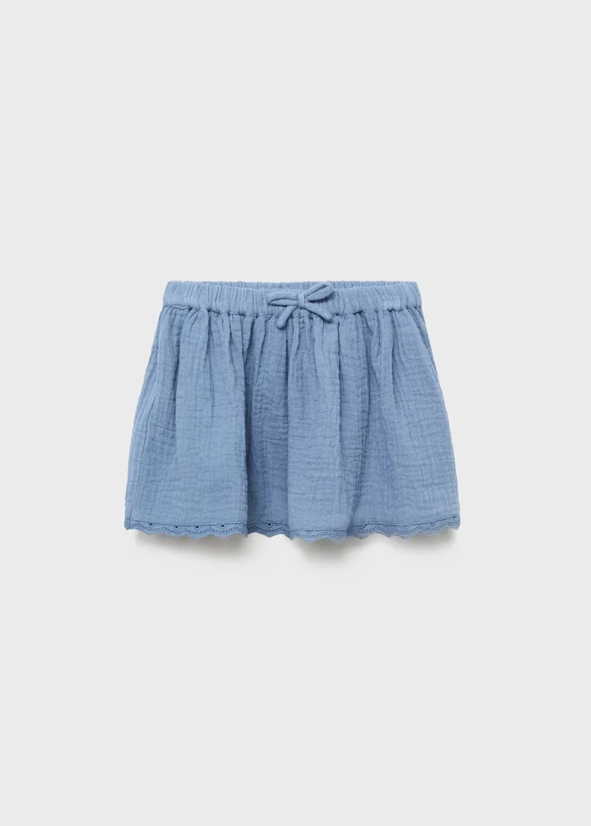 Wykonana w 100% z teksturowanej bawełny spódnica ma krótki krój i fason litery A. Pas posiada gumkę i regulowaną troczkę, które zapewniają większy komfort i lepsze dopasowanie.