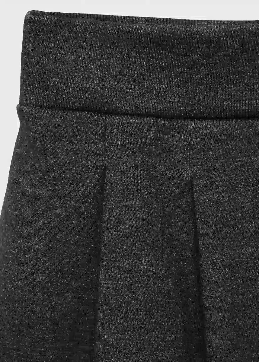 Tkanina bawełniana. Dzianina. Krótki krój. Prosty krój. Ozdobne plisy. Elastyczny pas. Bez zapięcia.