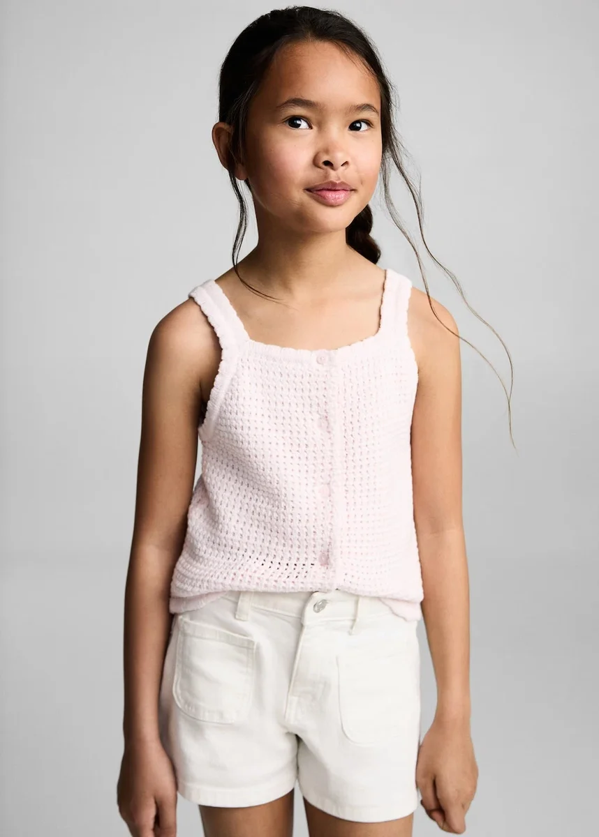 Bawełniana tkanina dżinsowa. Prosty krój. Krótki krój. Szlufki. Dwie naszywane kieszenie z przodu. Dwie naszywane kieszenie z tyłu. Zapięcie na guziki i zamek błyskawiczny. Produkt promocyjny.